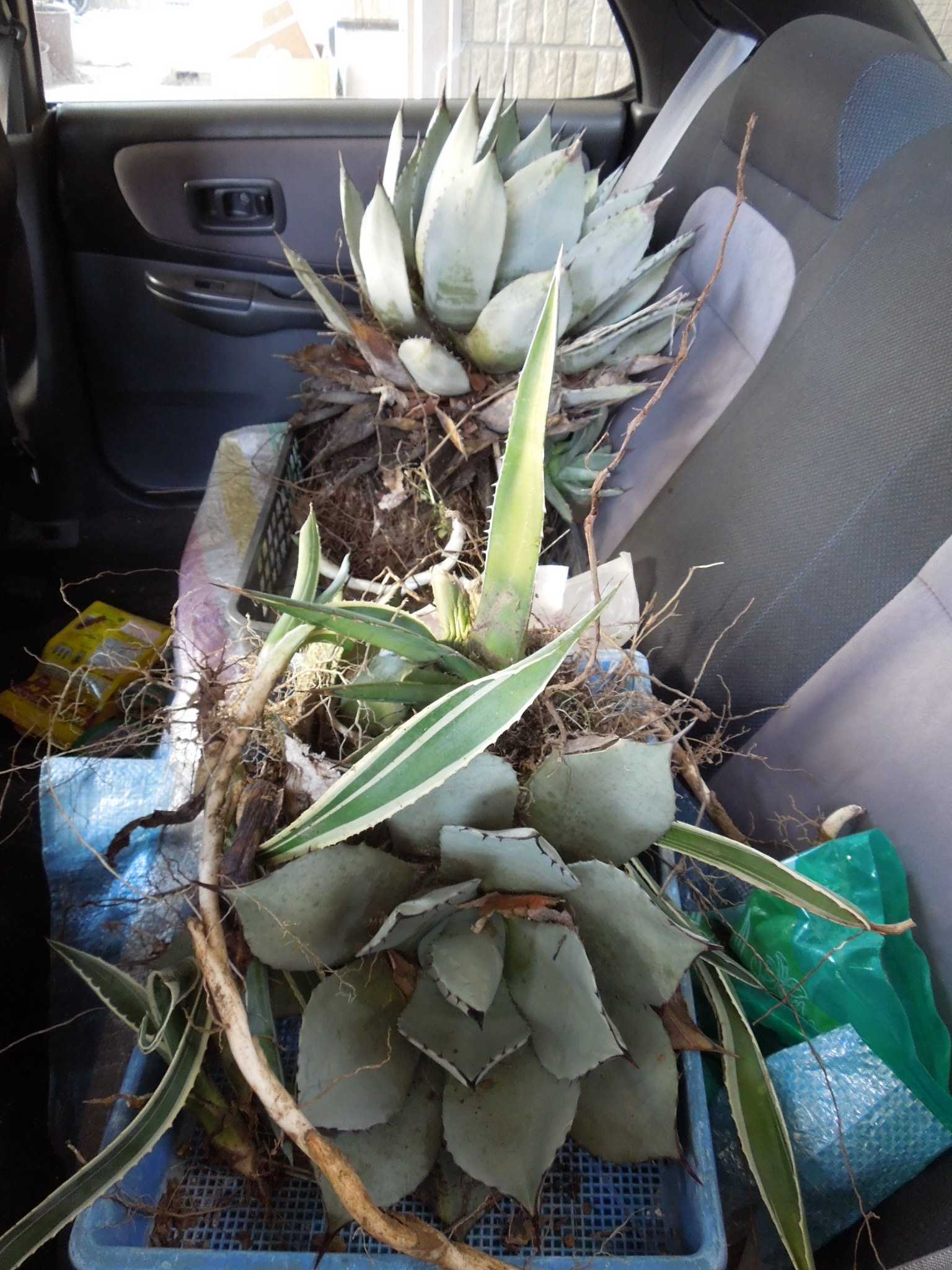 趣味仲間さんから、地植えにしてあるアガベを頂けることになって堀上げてきた。農作業用車両になっているSUBARU インプレッサWRX STiバージョンV.車内はアガベだらけ。吉祥天、パープソラム、アメリカーナ吉祥天吉祥天は子株を出していた。取り出すのが大変なので、窓を開放しておいた。トランクに積んできた、パープソラムとアメリカーナは・・・蒸れないようにトランクから出して、軒下保管。パープソラムアメリカーナ頑張って、早起き・・・暑くなる前に植え付けに行く。