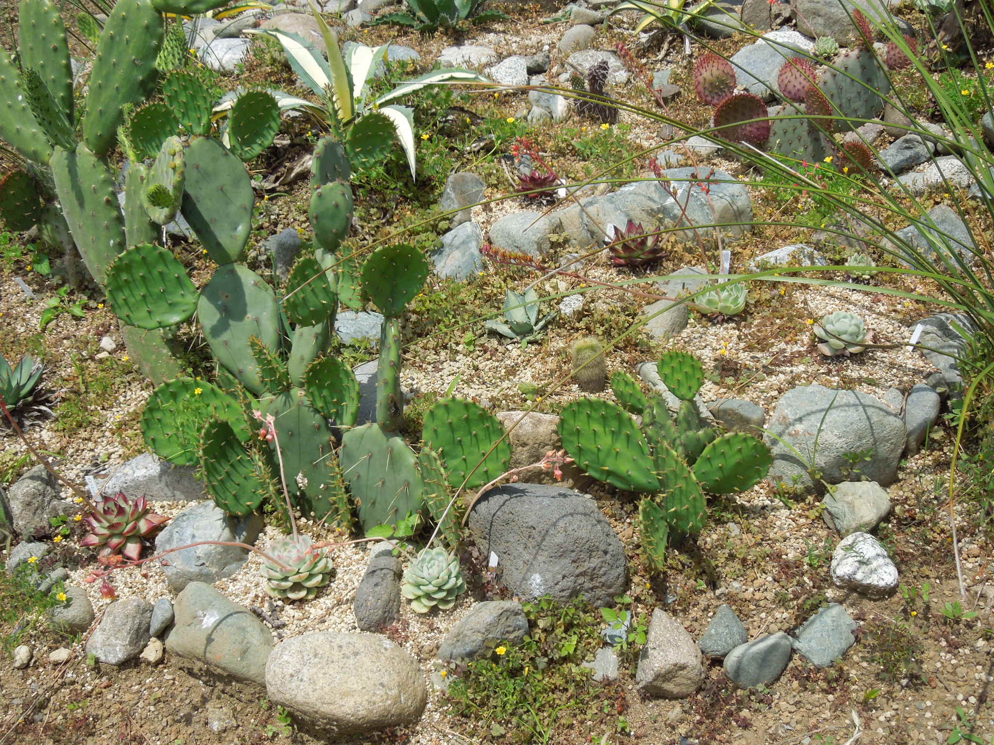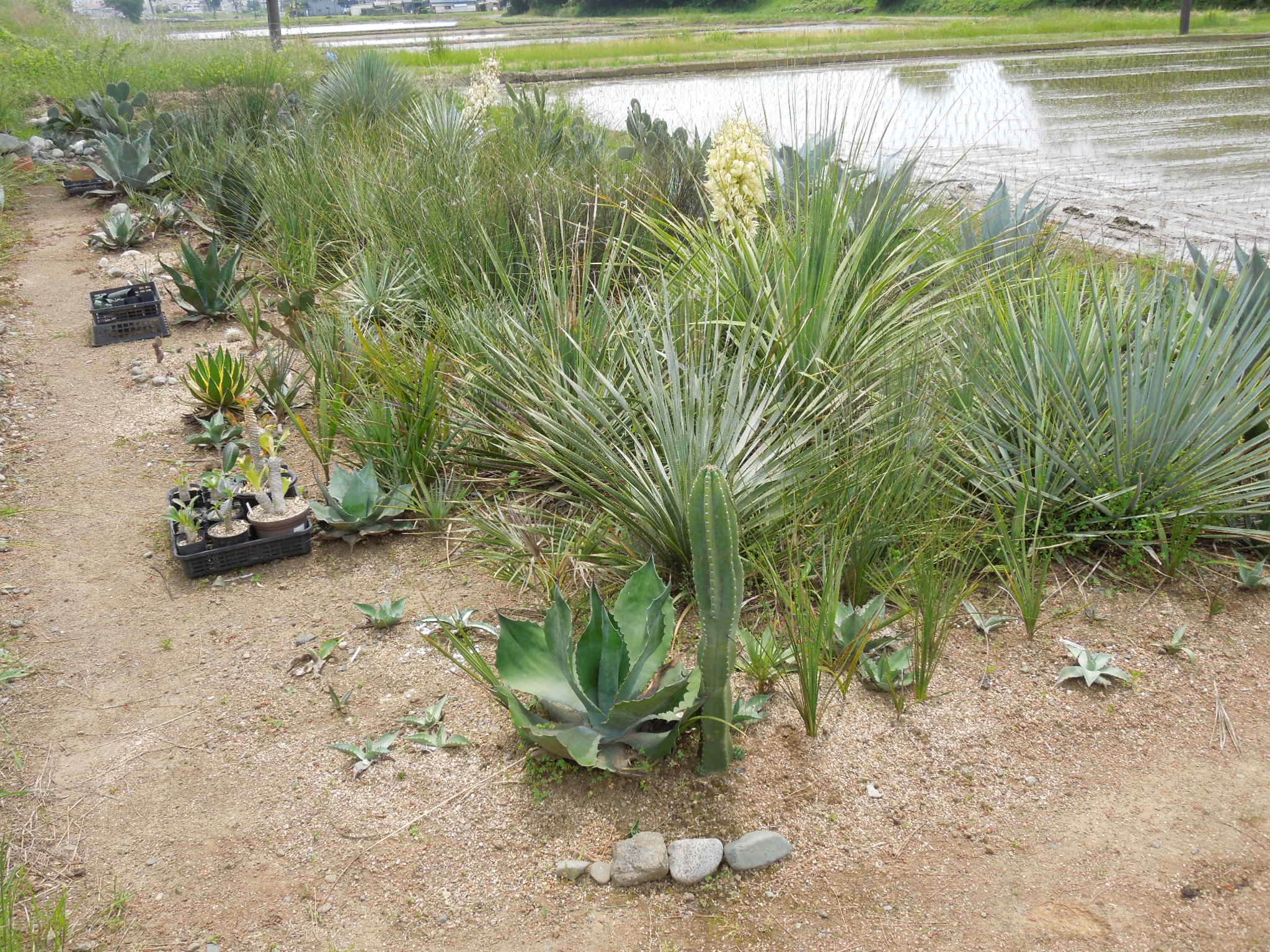 最近は週に3回くらいの畑通い。ユッカ・リギダは、花が散り始めた。フェロックス”クレイジーホース”は、生長が速いようで・・・周りの植物と、あちこちで接触し・・・子株も出していた。チャメロップスは、頭を抑えられ・・・パリの小苗は、頑張って・・・先端のトゲが、クレイジーホースの葉を突き破っていた。隣の鬼面角は、根元から枝を出していた。もう1株の鬼面角を見ると・・・こちらは、切断面から新芽を出していた。暑い日が多くなって、植物の生長が速くなるこの時期・・・行く度に、新しい発見がある。
