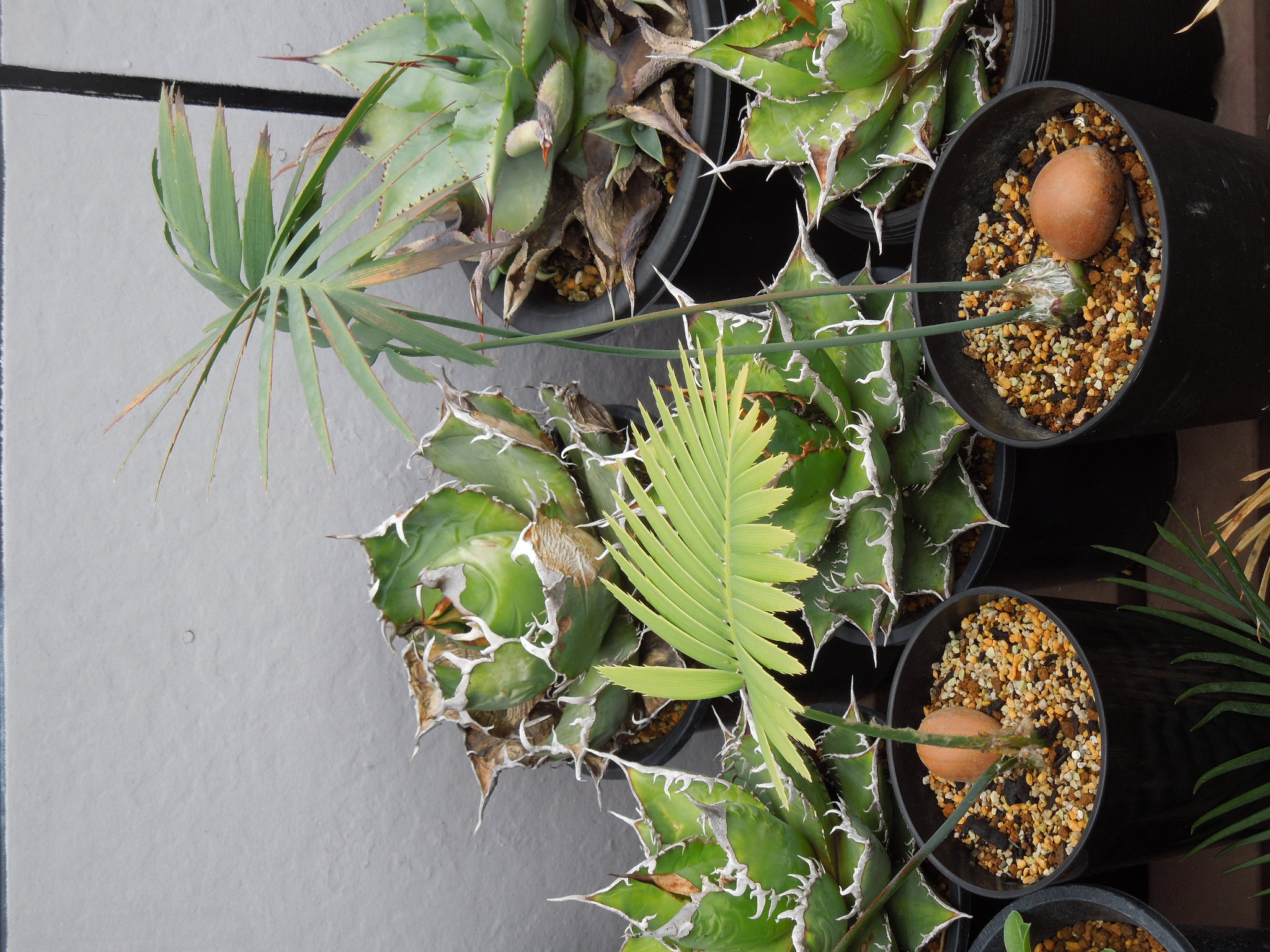 昨年、残っていた1株をダメにしてディオーン・スピヌロスムは全滅。懲りずに春にリトライ。現在4株残っている。物干し場に2株1株は既に新葉が展開、硬化中???もう1株も、そろそろ新芽が出そう???ブロック塀の上の2株こちらも、新葉は1枚だけ。
