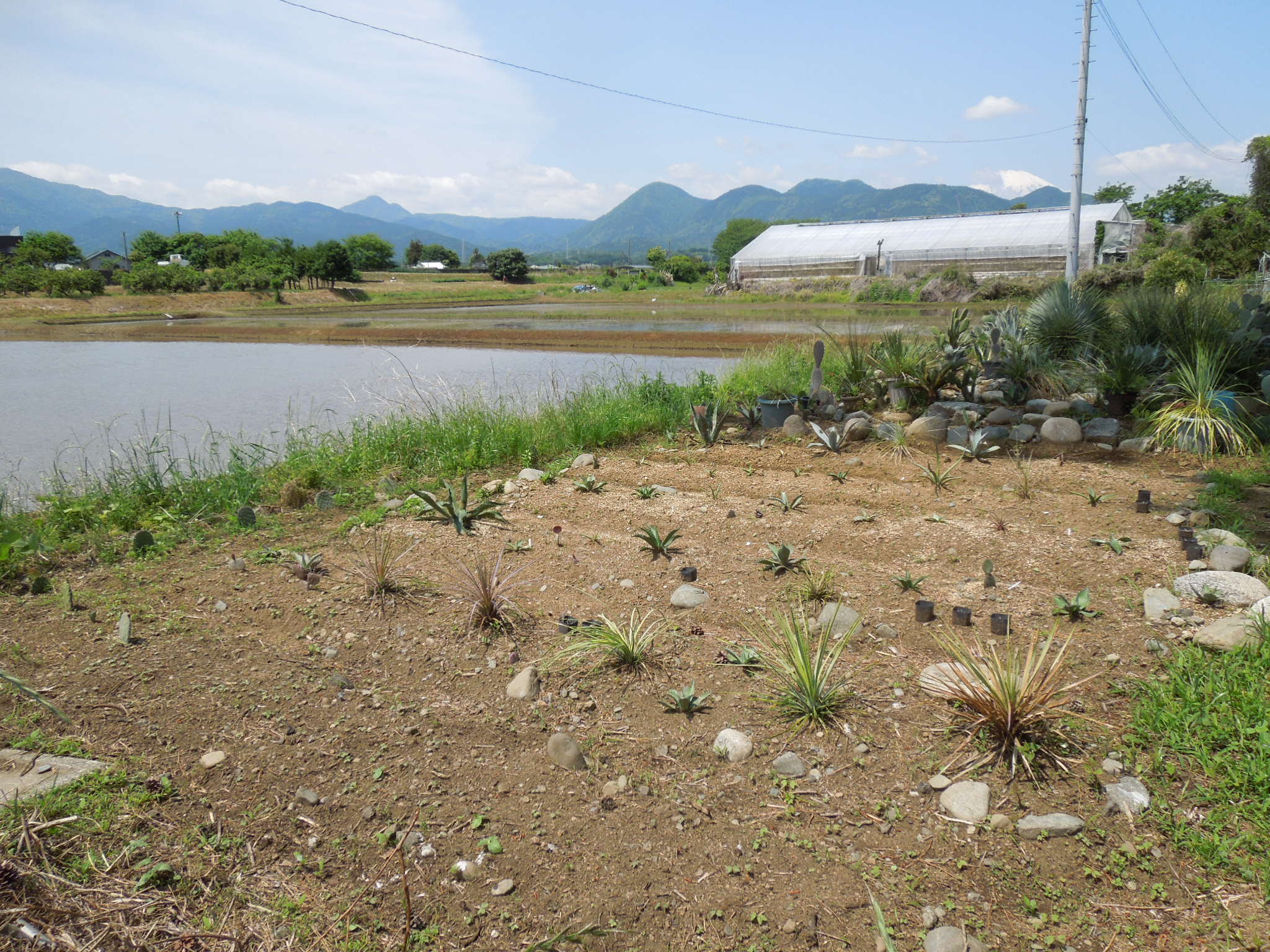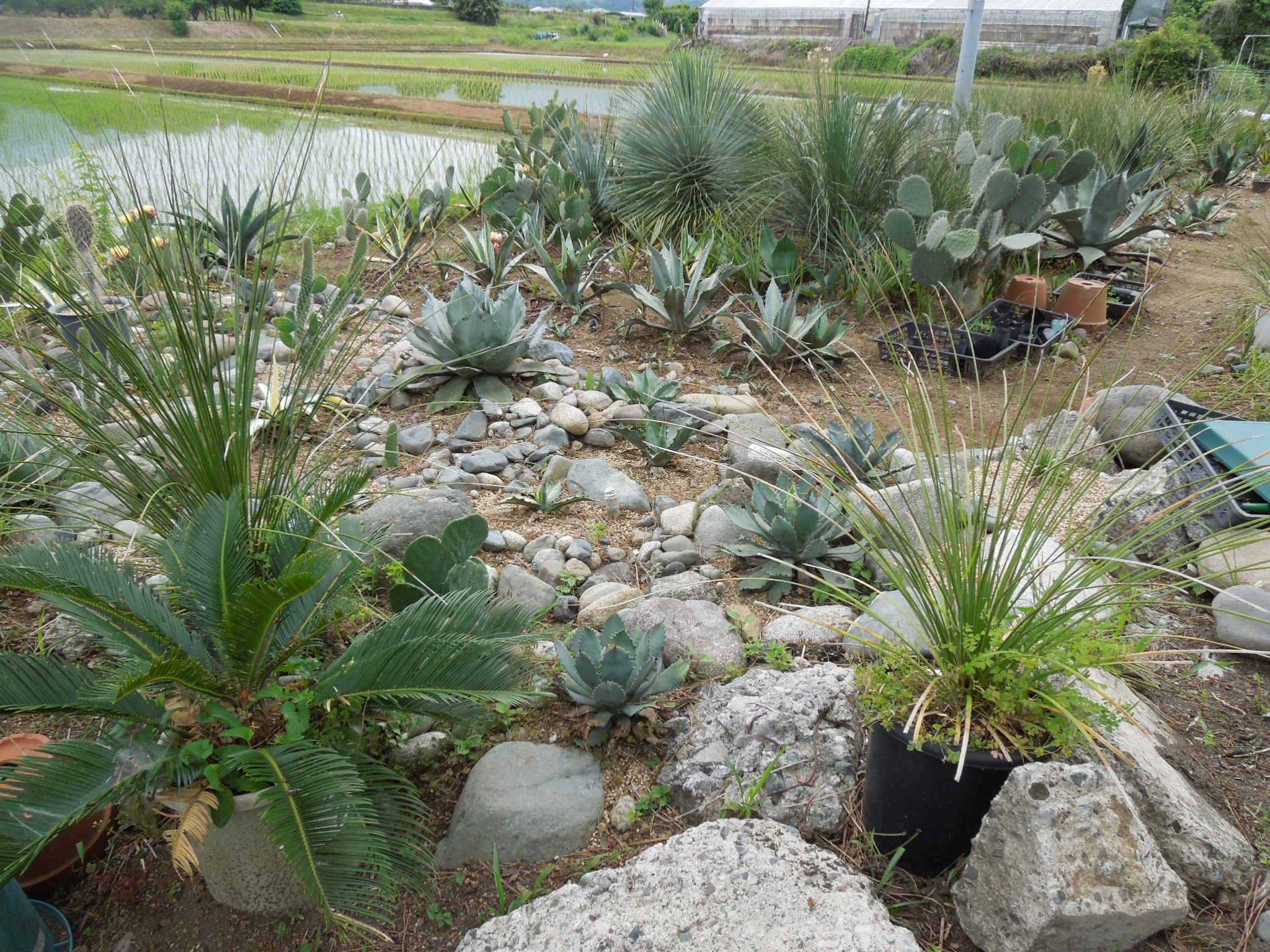 暑い日が多くなってきたが、今日は作業日より。植物の様子を見ていたら・・・大丸盆が、倒れていた。1段目が腐った???1ヶ月前は、全く問題無さそうだったが・・・他の大丸盆2株は問題無し。畑の中では、少しだけ日当たりが悪く、水はけも良く無さそうな場所なので・・・植え付け場所の問題だと思う。2段目からカットして、他の場所に植え付け。また、大丸盆が増えそうだ。マクロケントラの小苗が、抜き上げられていた。鳥の仕業みたいだ。地面に降りて・・・先端の新芽を囓って、抜き上げた感じ。発根していたので、そのまま植え付け。マクロケントラは強そうなので、問題無いと思う。