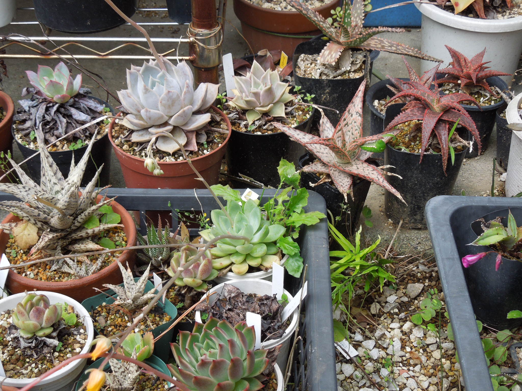 屋内に取り込む場所が無くなって・・・アロエはほとんど屋外越冬した。ダメになったり、復活中だったり。赤系は、クリスマスキャロルとかフラミンゴの名前で購入した苗。白系は、ラウイとかスノーフレークの名前で購入した苗。ブルーミーは少し寒さに弱いようで・・・ダメになったり復活中だったり。手前の赤いアロエ。耐寒性が強いのか、ほとんどダメージは無し。赤いブツブツが多い、面白い葉。子株が外せそうなので、増やしてみようか・・・