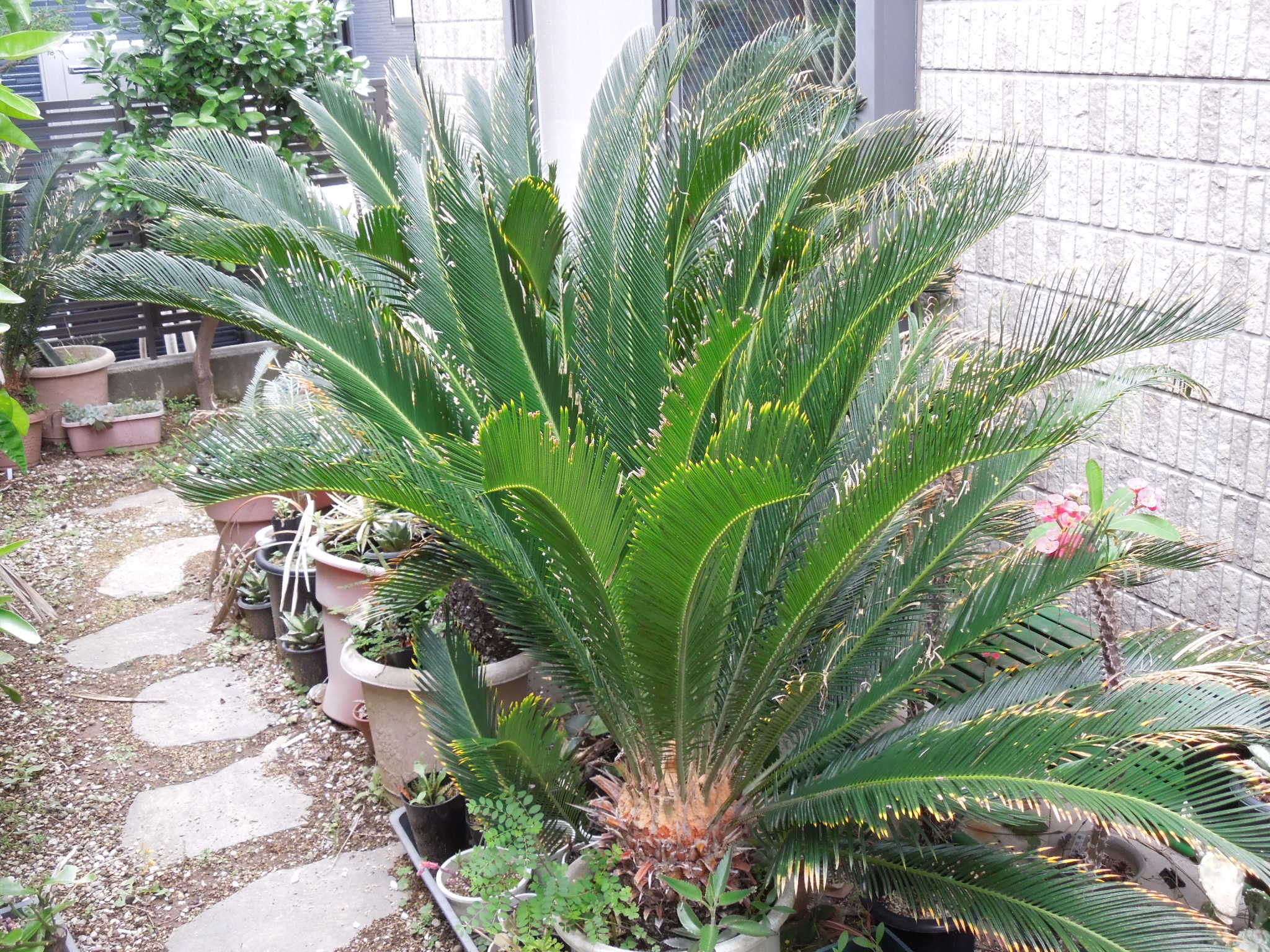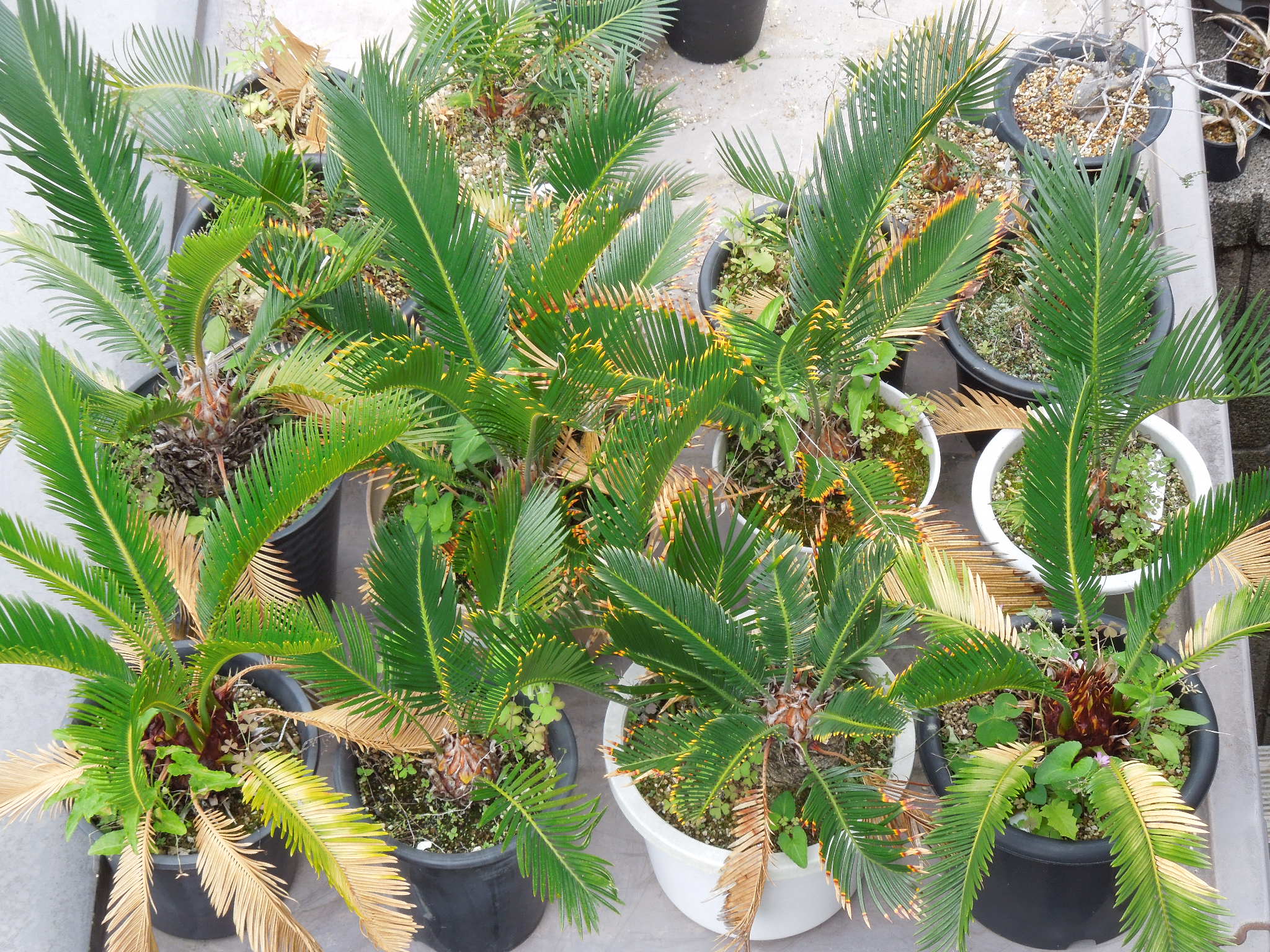数年前に、コタロー君の散歩中に拾った蘇鉄の種を実生してから始まった・・・ソテツ栽培。ソテツについて、いろいろ見ていてみつけた・・・金環ソテツという名前のソテツ。晩秋から葉の縁が黄金色に色づく。鉢ごと地面に置いたら大変なことになってきた。葉が広がって、邪魔なくらい。鉢底から根が出て動かせない。小さかった子株もだいぶ大きくなって、葉の数も増えてきた。新しく出た子株も、いくつか・・・鉢は動かないし、どうしようか・・・主幹も、そろそろ新芽が出そうだが・・・こちらは、少し形が違う感じ。花芽???