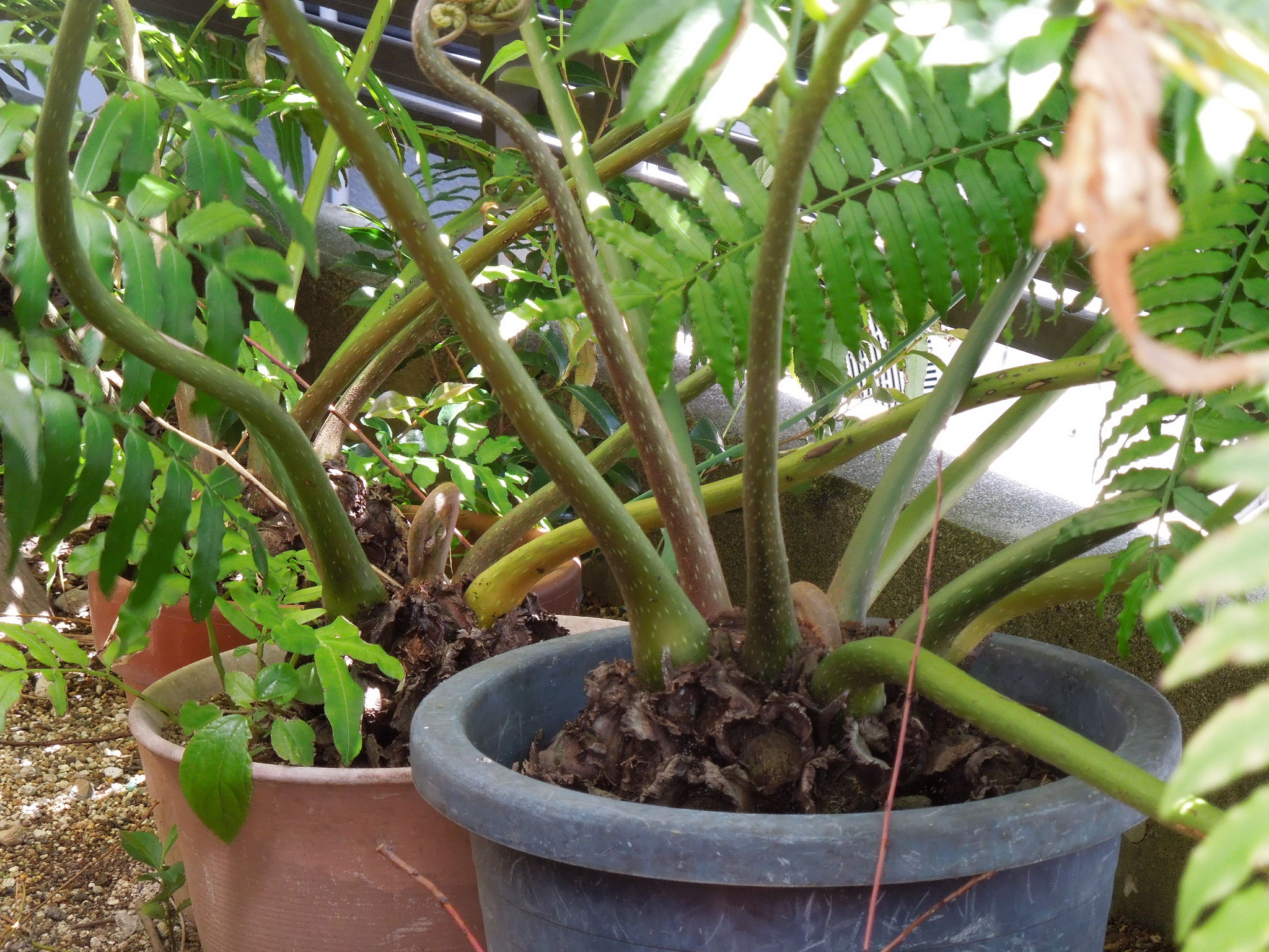 2回の長期寒波でだいぶ痛めつけられたが・・・どれも、無事に活動開始。一番大きいリュウビンタイは、10号鉢地植えのリュウビンタイの方が、動き始めるのが早かった感じ。鉢植えより、新芽が展開している。こちらの地植えも・・・
