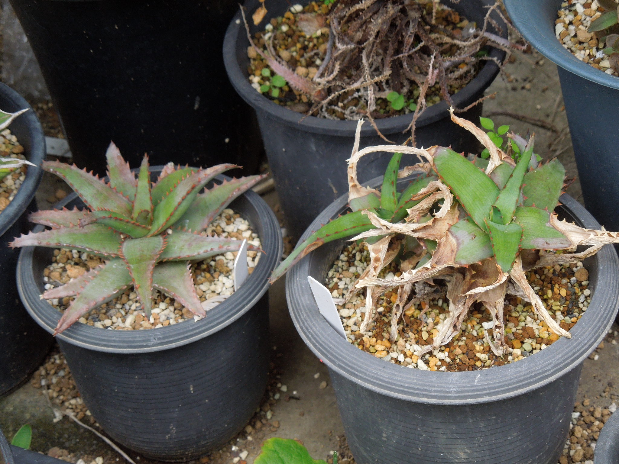 大型の木立性アロエ。小さい鉢に植えたままでも、それなりに育つ。2023年6月かなり不安定な状態になってきた。昨冬は問題無かったが・・・今冬は、2回の長期寒波の影響か、葉の色が変わっていた。復活中???ということで植え替え。行き場所が無くなった根が、鉢の中でとぐろを巻いて・・・酷い状態。あまり大きい鉢に植えると、大変なことになるので・・・6号鉢に植え付け。昨年3月、いきなり大きい鉢に植え替えたバーベラエ。半年後には大変なことになっていた。