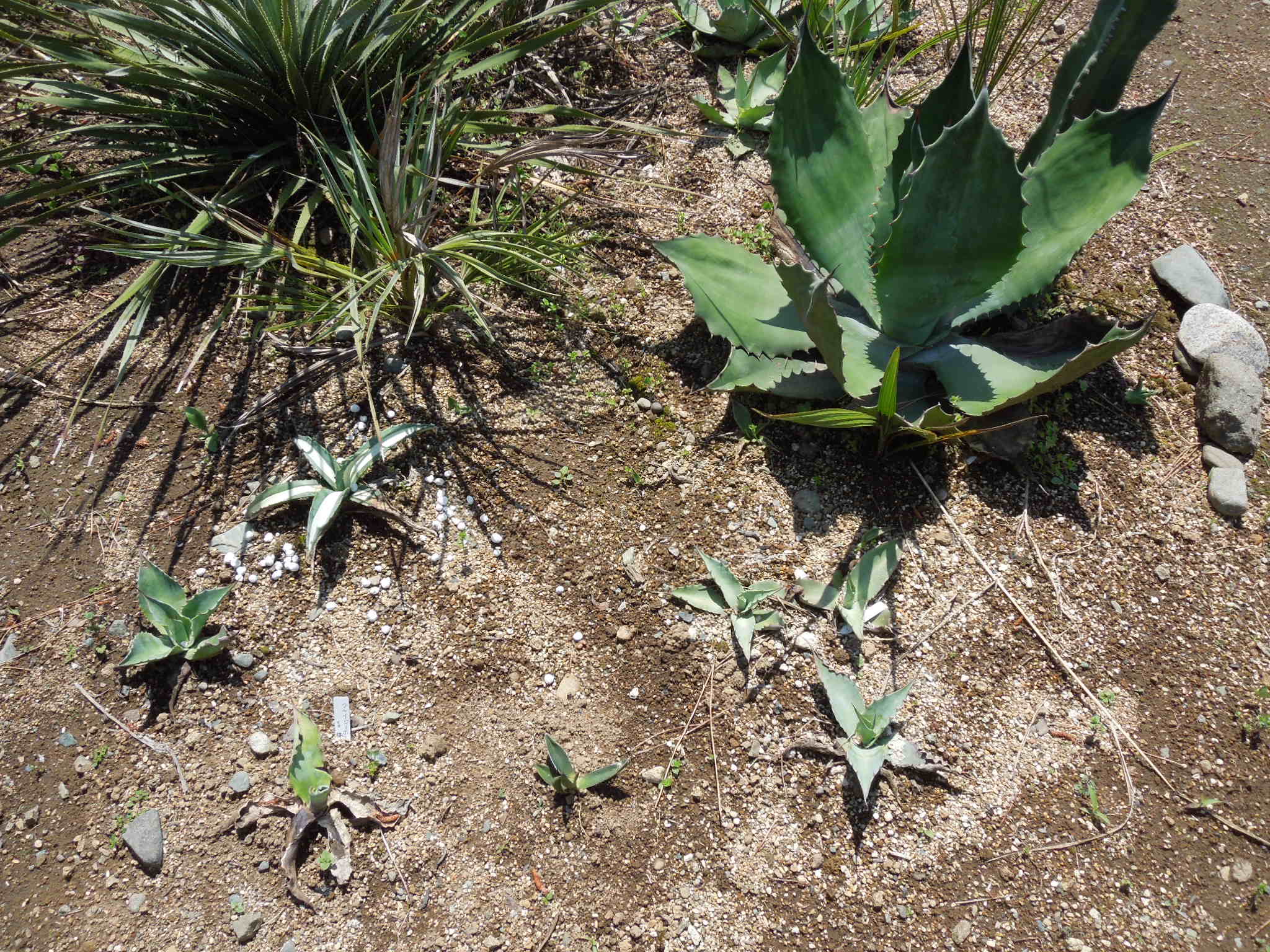 昨日持ち帰ったアガベを、植え付けに行った。朝から暑い。重い苗を持って、行ったり来たり。パリーはあまりの重さに、途中で挫けて・・・子株を外した。少しだけ、軽くなった。子株から、また子株が出ていた。なんとか植え付け終了。パリー(親株)パープソラムパリー(子株)アメリカーナ久しぶりの、重労働だった。