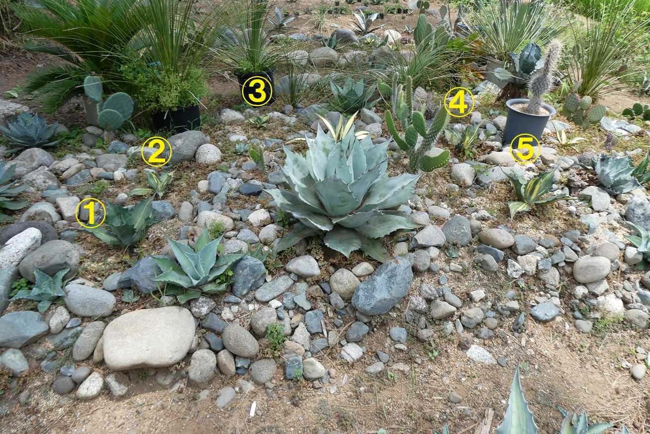 2022年に実生。その後、鉢に植え付けて畑に置いた苗は越冬できずにダメになり・・・バラ蒔いた種から発芽した苗だけ、生き残っている。自宅の鉢植えは、越冬できたが・・・畑でダメになった鉢植え苗は、用土が冷えすぎたのかと思う。超過密状態。周りは、ユッカとかダシリリオンとか・・・いくつかは、掌状葉を出してきた。自宅の地植え苗は、どれもこんな大きさ。同じ年の苗だが、日照時間や土質など環境に違いによるものか・・・
