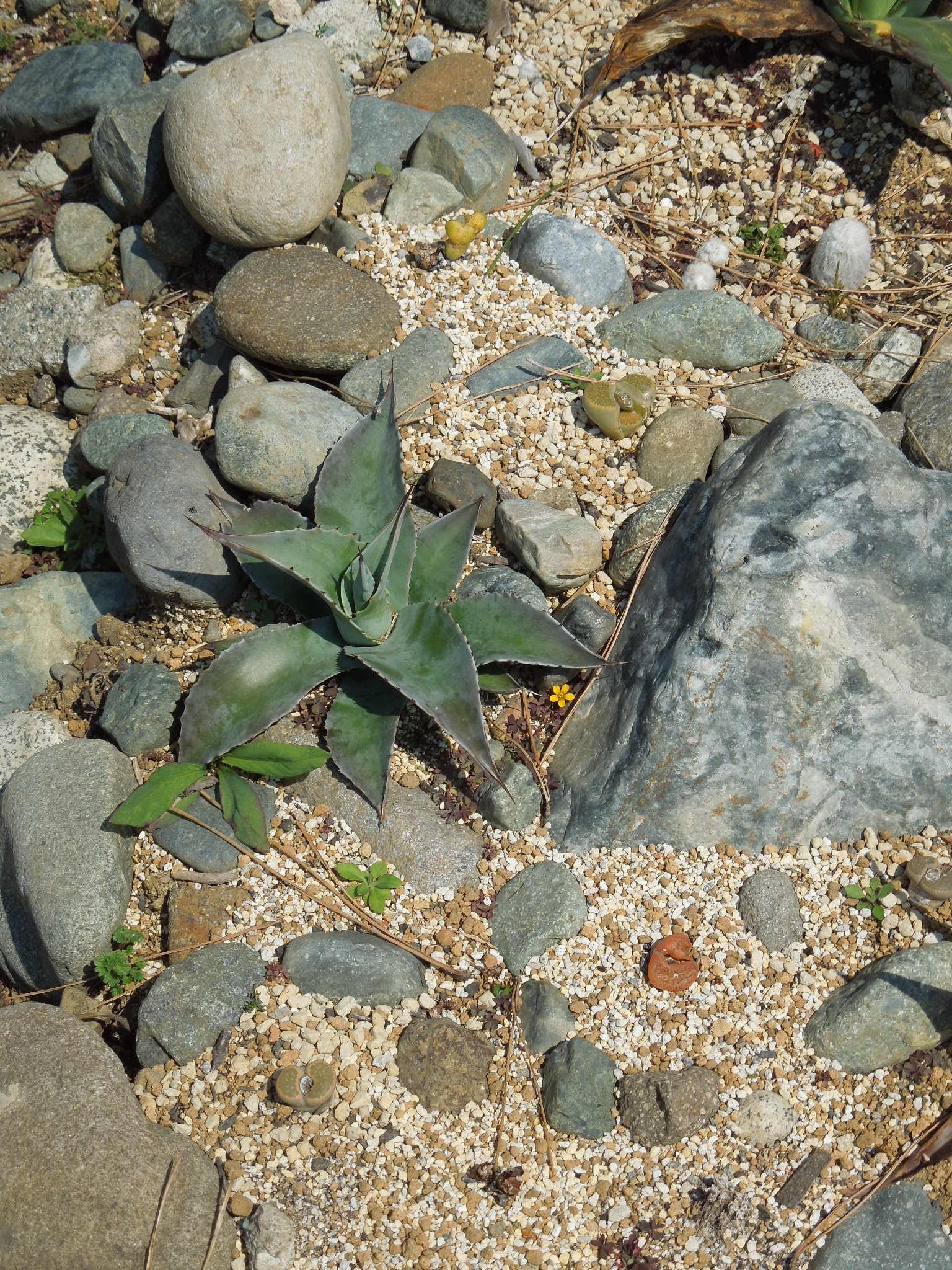 2月中頃までは頑張っていたブルーエルフ。その後の雨と寒暖の差でダメになったか???処分しようとしたら・・・頭だけポロリ・・・子株が生きていた。もう1株も・・・クサントロエアとかダシリリオンとかの隙間に植えたブルーエルフは問題無し。周りの植物に守られた???