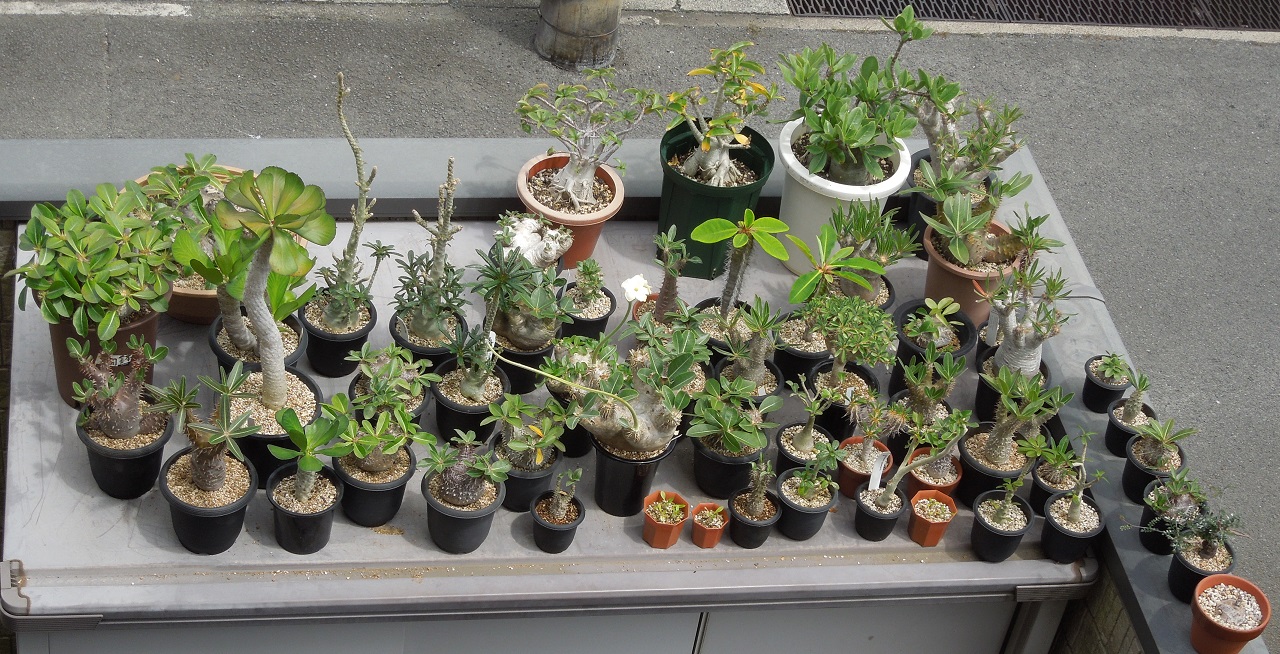 物置の上が夏場のパキポディウム置き場です。