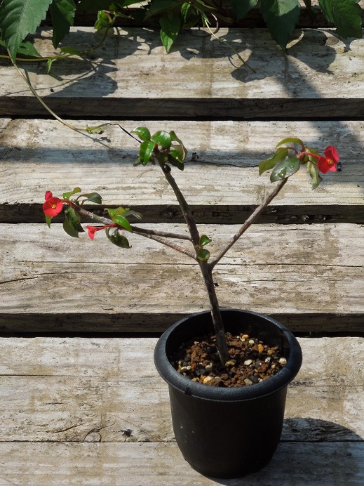 花きりんの原種と言われる棘無しの花きりんの赤い花もいいですね。