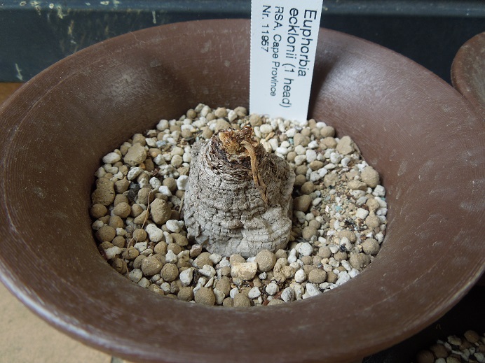先日ペラルゴニウム・カルノーサムが新葉を出し始めていましたが、昨秋雨でダメにしてしまったシレニフォリア、エクルニーに再挑戦のつもりで今年のexotica 1st update で入手した冬型多肉は