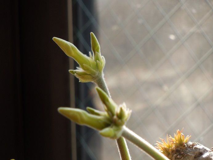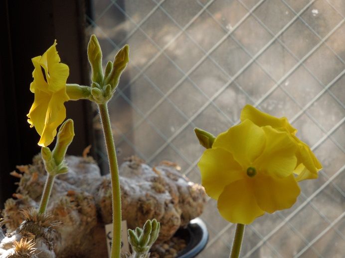 今年はえびす大黒の花が昨年より少し遅いです。最近の出窓の最低気温は7℃でした。 Densucaule's flowers are a little later this year than last year.The minimum temperature in bay window was 7 ℃.