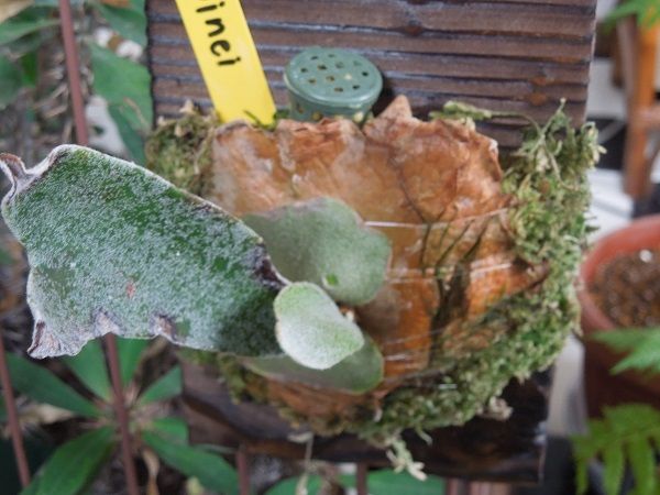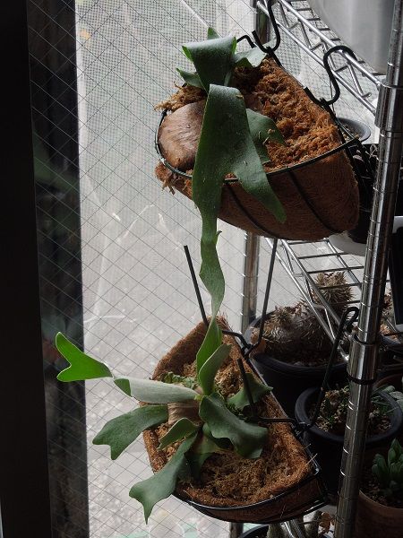 ビカクシダの森さんから持ち帰って約2週間、寒さに弱いとのことで暖かい部屋(17~27℃くらいに)置いたリドレイは貯水葉が大きくなってきました。