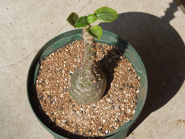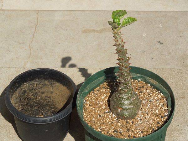 葉が付いているので軽く水を遣って出窓のパキポ置場に