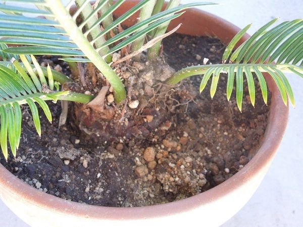 蘇鉄の鉢が最近風が吹くたびに倒れるようになったので大きい鉢に植え替えることにしました。昨年出た葉が大分伸びて風を受けやすくなったみたいです。