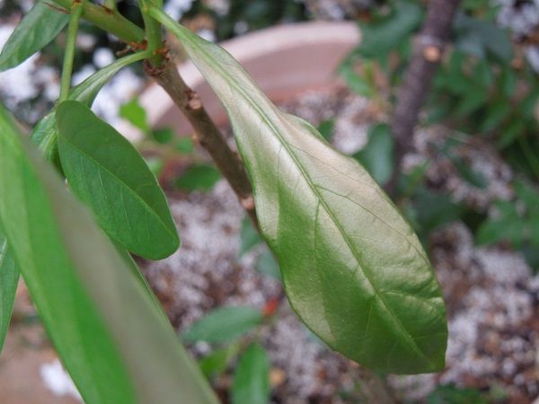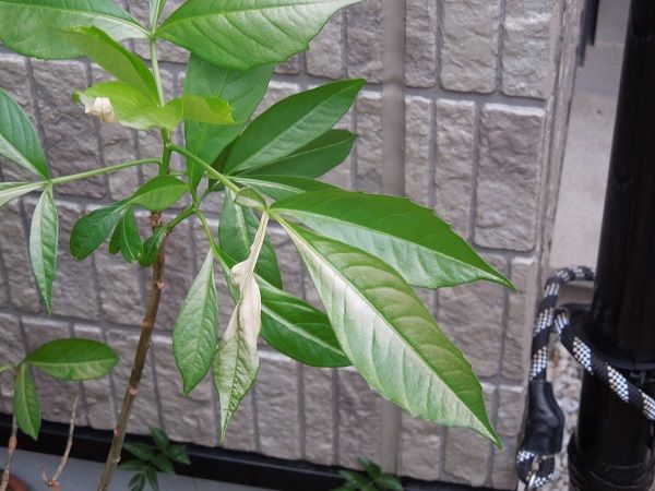 新芽が伸びていたので5月に入ってから屋外に出していたバオバブの葉が傷んでしまった。
