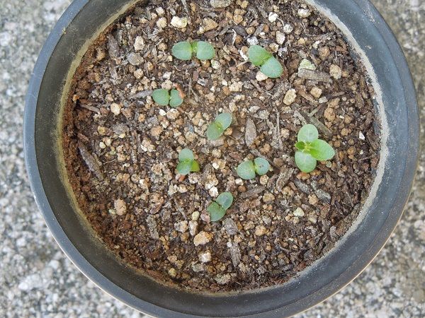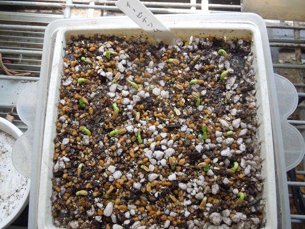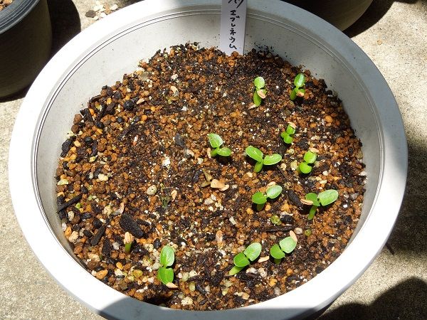 えびす笑い~試し蒔き2鉢。どちらも10粒づつ蒔きました。