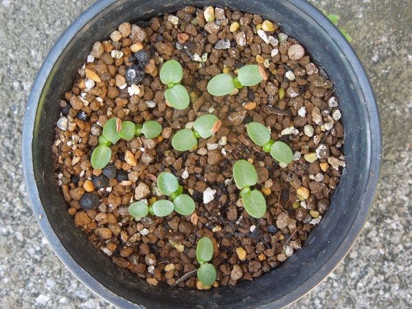 バロニー 30粒くらい蒔きましたが発芽したのはこれだけ。場所を取るので鉢にまとめました。