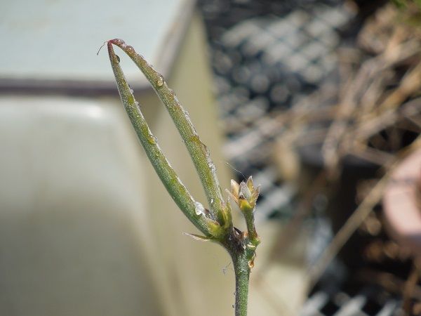 よく見たら小さな莢がもう一つ、莢が弾けて種が飛んでいく前にネットを掛けておこう。