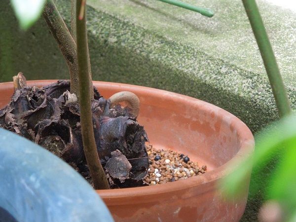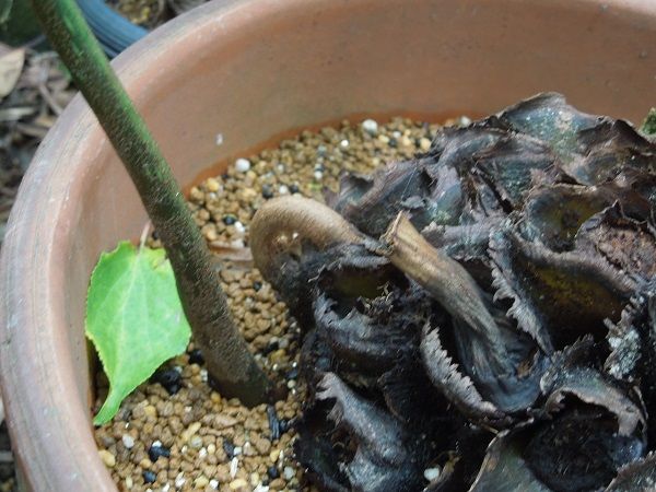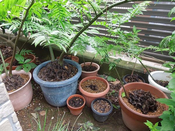 前回試しに外に出したリュウビンタイはその後問題なさそうだったので、残りのリュウビンタイも全部外に出した。少し直射日光が当たる時間が有るけれどほとんどは木の下で木漏れ日が当たるような感じの場所