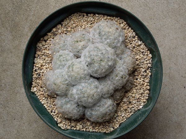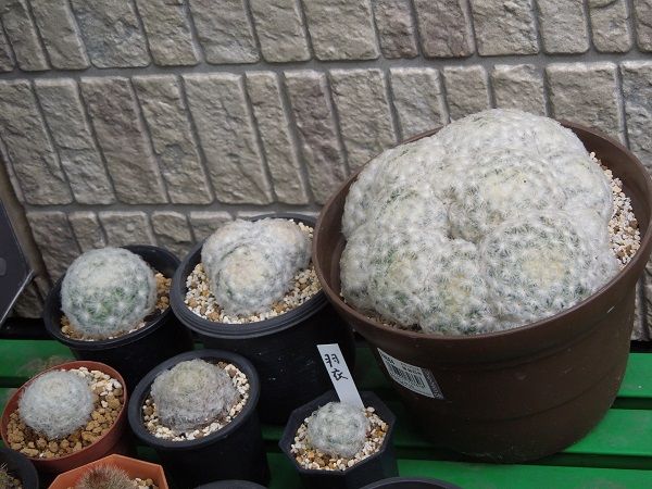 今年初めにワンダーカクタス重田さんから分けてもらった白星がいつの間にか鉢からはみ出しそうになっていた。春から動き始めて膨らんできた???