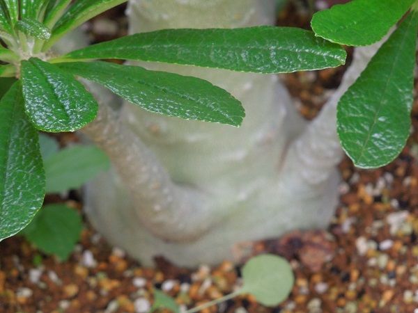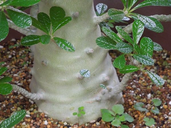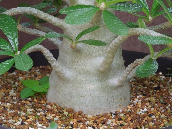 5月の連休明けから屋外雨ざらし栽培でしたが、今年の長雨にも腐らず良く育っている。どこかに書いて有った通りドルステニアギガスは大きい鉢で少し肥料分がある用土で良く育つようだ。