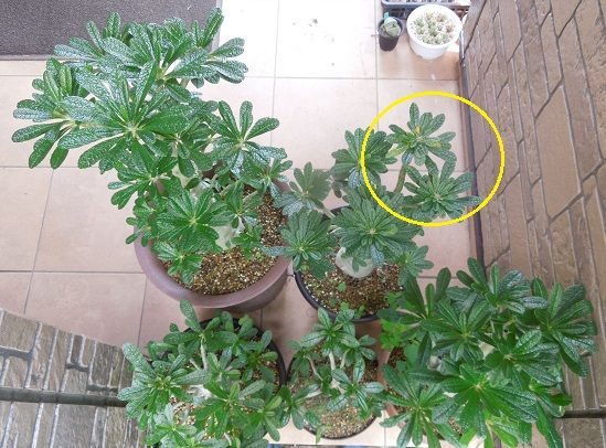 どれも似たような形だが、根元も少しは太ったか。鉢植えの雨ざらしで水分が多い栽培では現地のような形にはならないか・・・