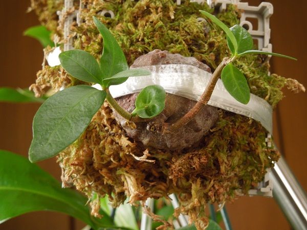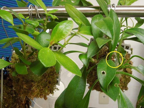 ミルメコディアベッカリー、ヒドノフィツムフォルミカルムなどのアリ植物は10月初めに屋内に取り込んで物干しに吊るしてある。