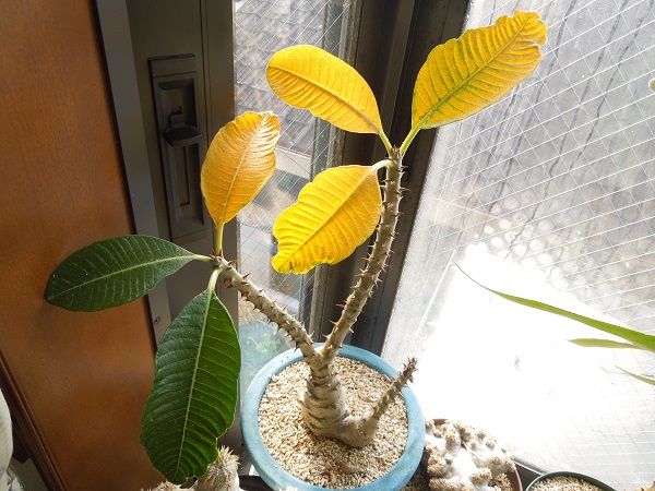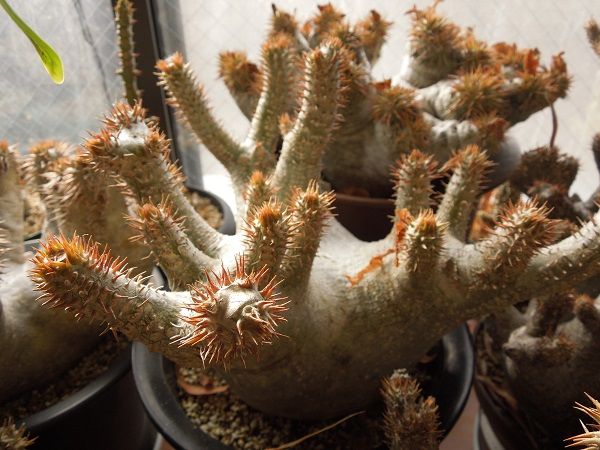 毎年12月初旬から中旬にかけて活動を開始する出窓のパキポディム、昨年一番に活動開始したえびす笑いはまだお休み中。