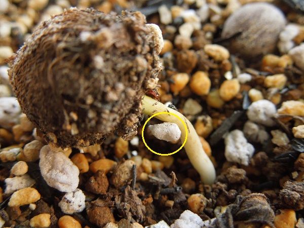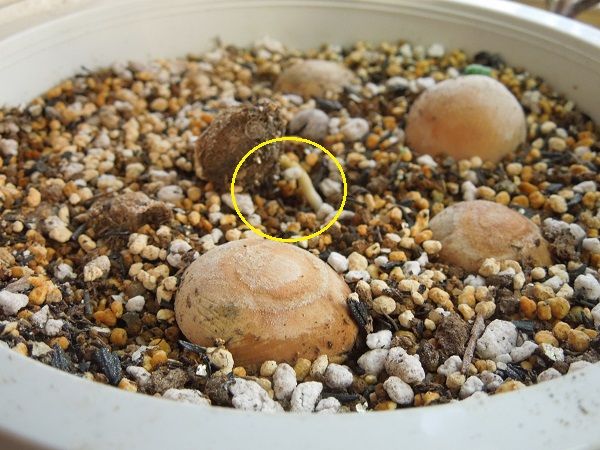 こいつはよく見たら根から何か塊みたいなの出てきている、ここから葉が出て来るのか???