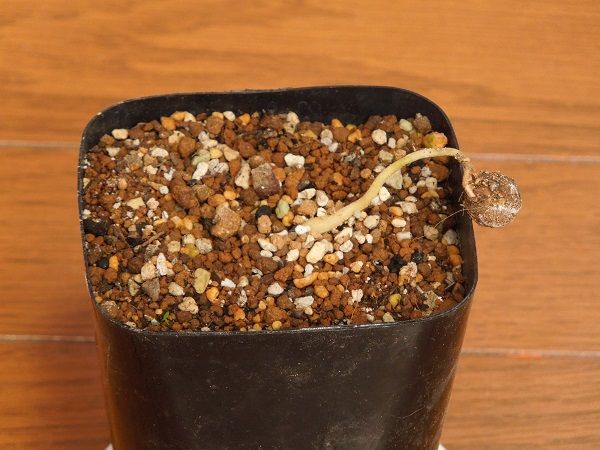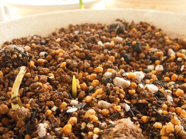 最初にチャメロップスが発芽してから約3週間、根がうまく潜らずに土を足したり植え替えたりしているうちに2個目、3個目が発芽していた。