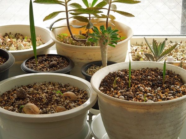 1つだけ葉が出て後は変わり無しのチャメロップスだったが他の種も葉が出始め、現在は5個目が葉を出してきた。