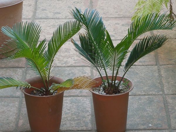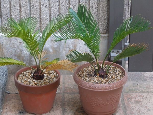 植え替えのために自宅に持ち帰ったので自宅に置いてあった金環蘇鉄と並べてみると・・・