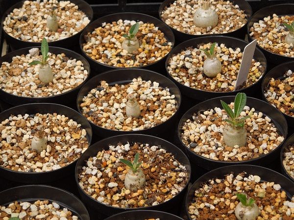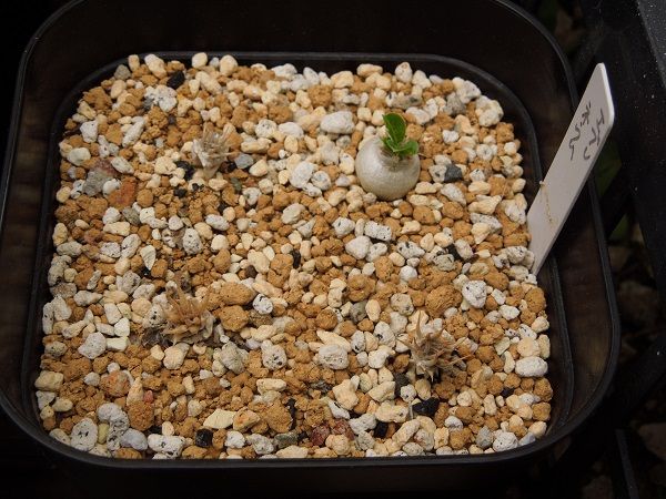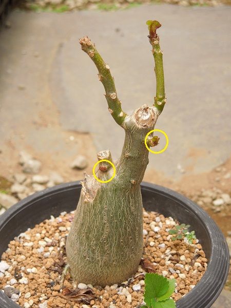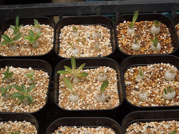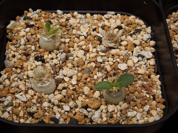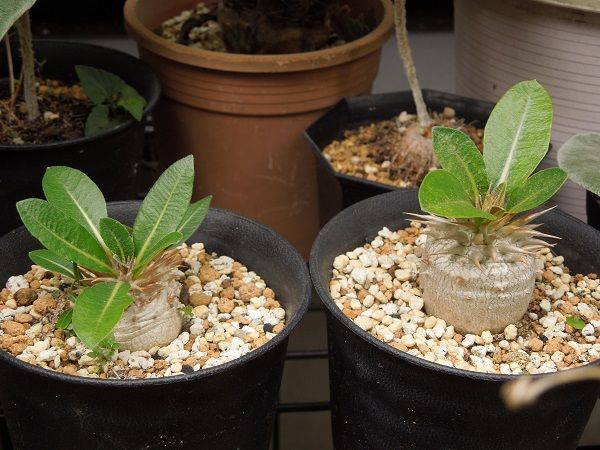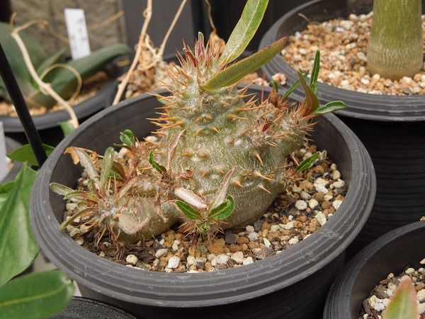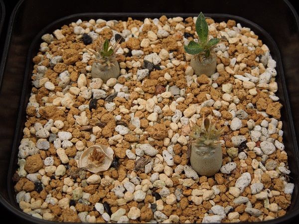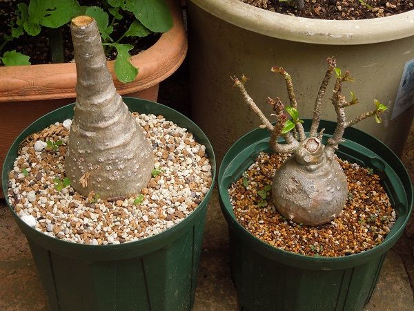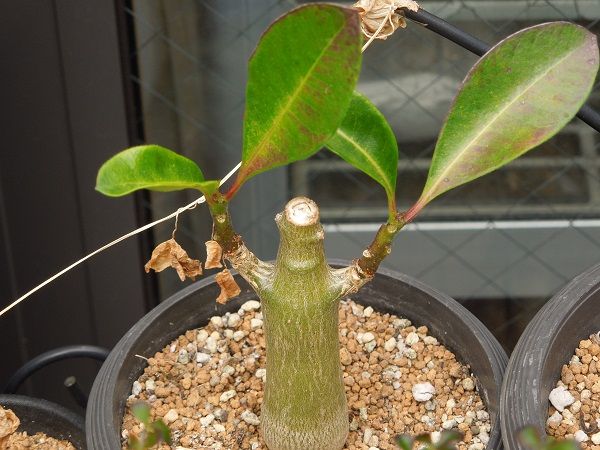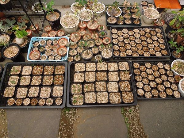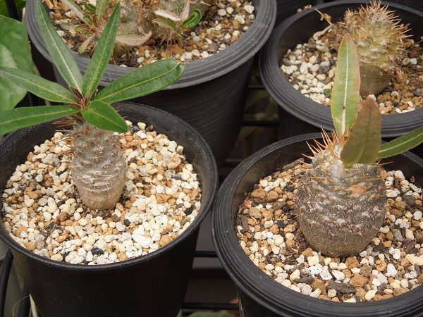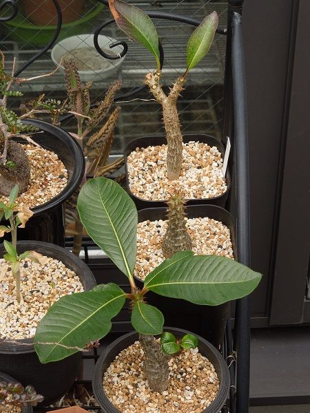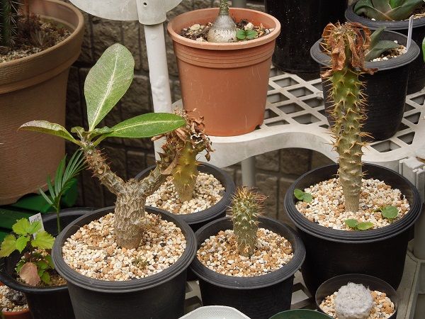 物置の上~パキポディウム親株、エブレネウム、えびす笑い、イノピナツム