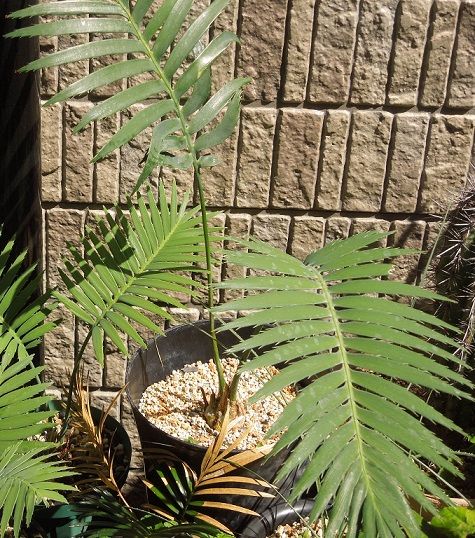 我が家にはディオーンスピヌロスムが4鉢有るが、2鉢は春先に丸坊主にし、残りの2鉢は葉を切らなかった。
