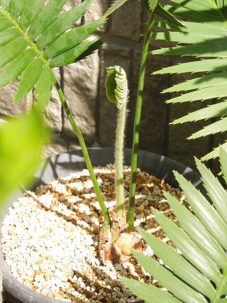 真夏になって1株だけ新葉が出ていなかったディオーンスピヌロスムに新葉が出てきた。