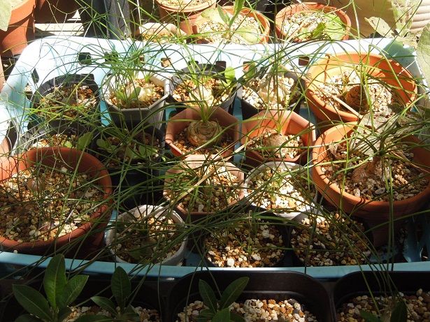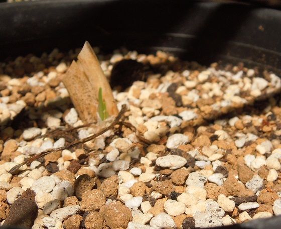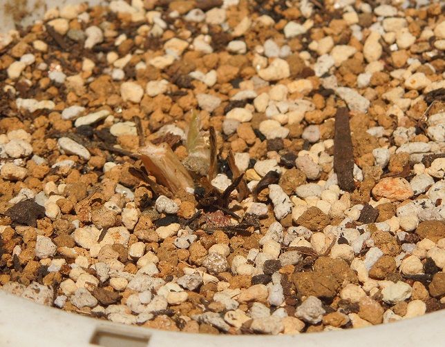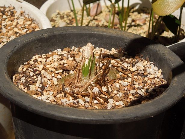 先日株分けをしたアルブカスピラリス”フリズルシズル”に新芽が出てきた。