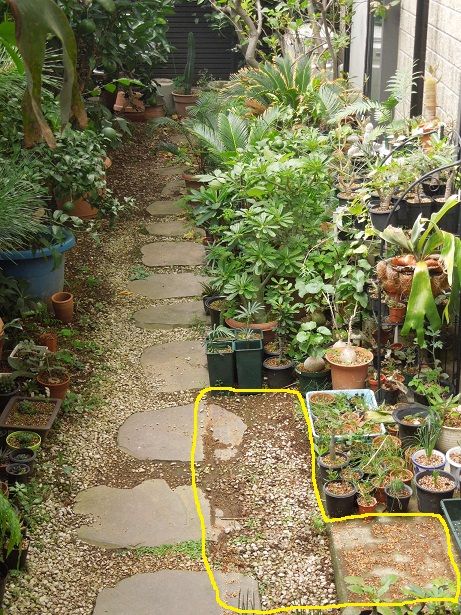 砂利が敷いてある地面に直接置いてあったが、この時季太陽高度が低くなって日が当たりにくくなり地面が乾きにくくなっている。
