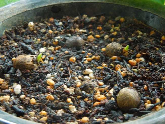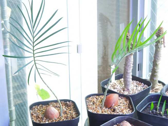 先日葉を出し始めた2個目のカイルンシアナ(右側)はほとんど葉が開いた感じ。