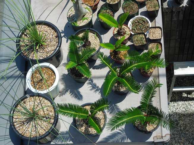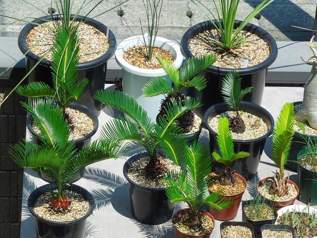 ソテツ、ヤシ置場に。