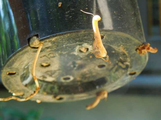 3月初旬に種まき、4月に入ってから根が出始めて深鉢に植え替え。