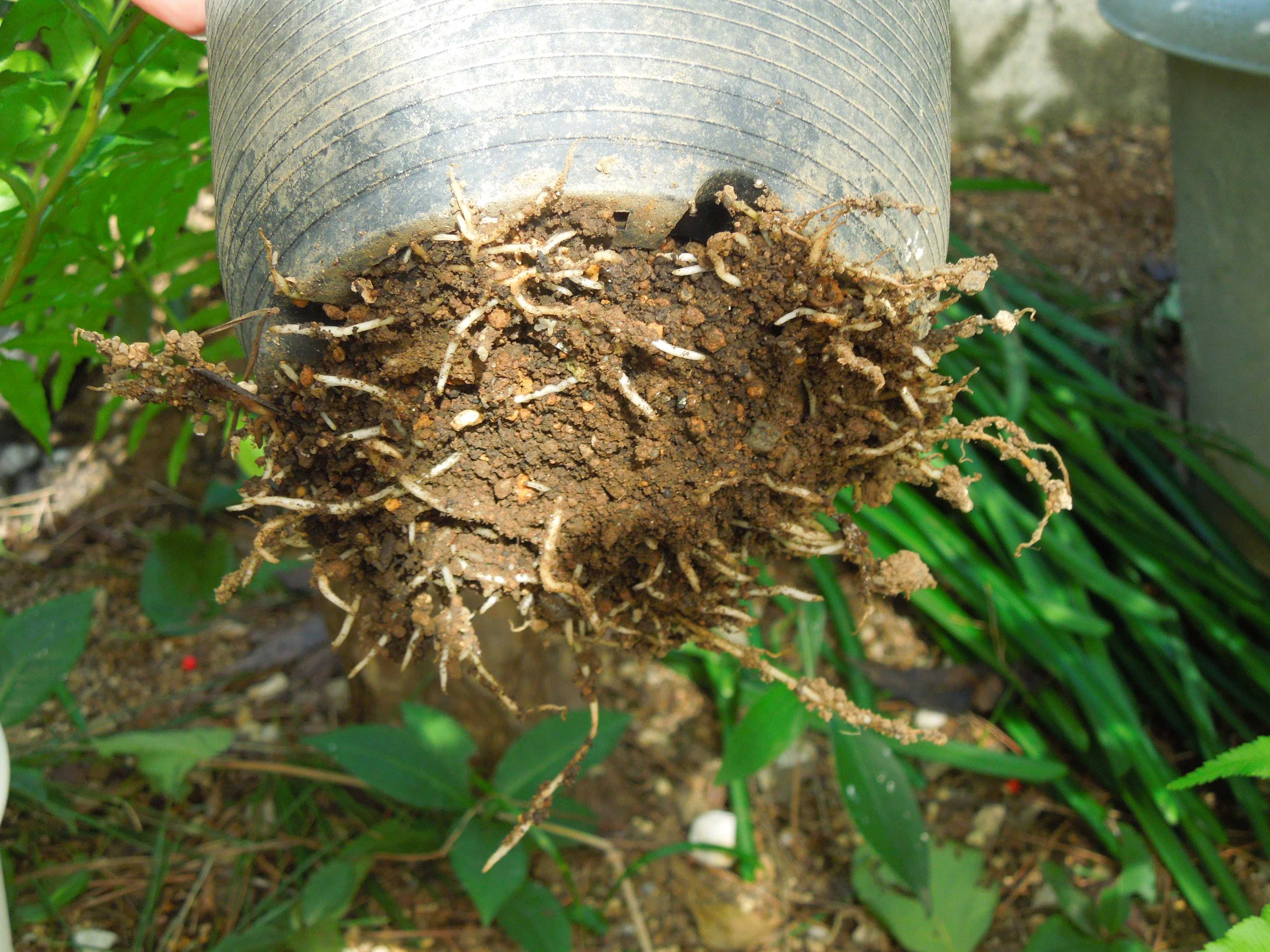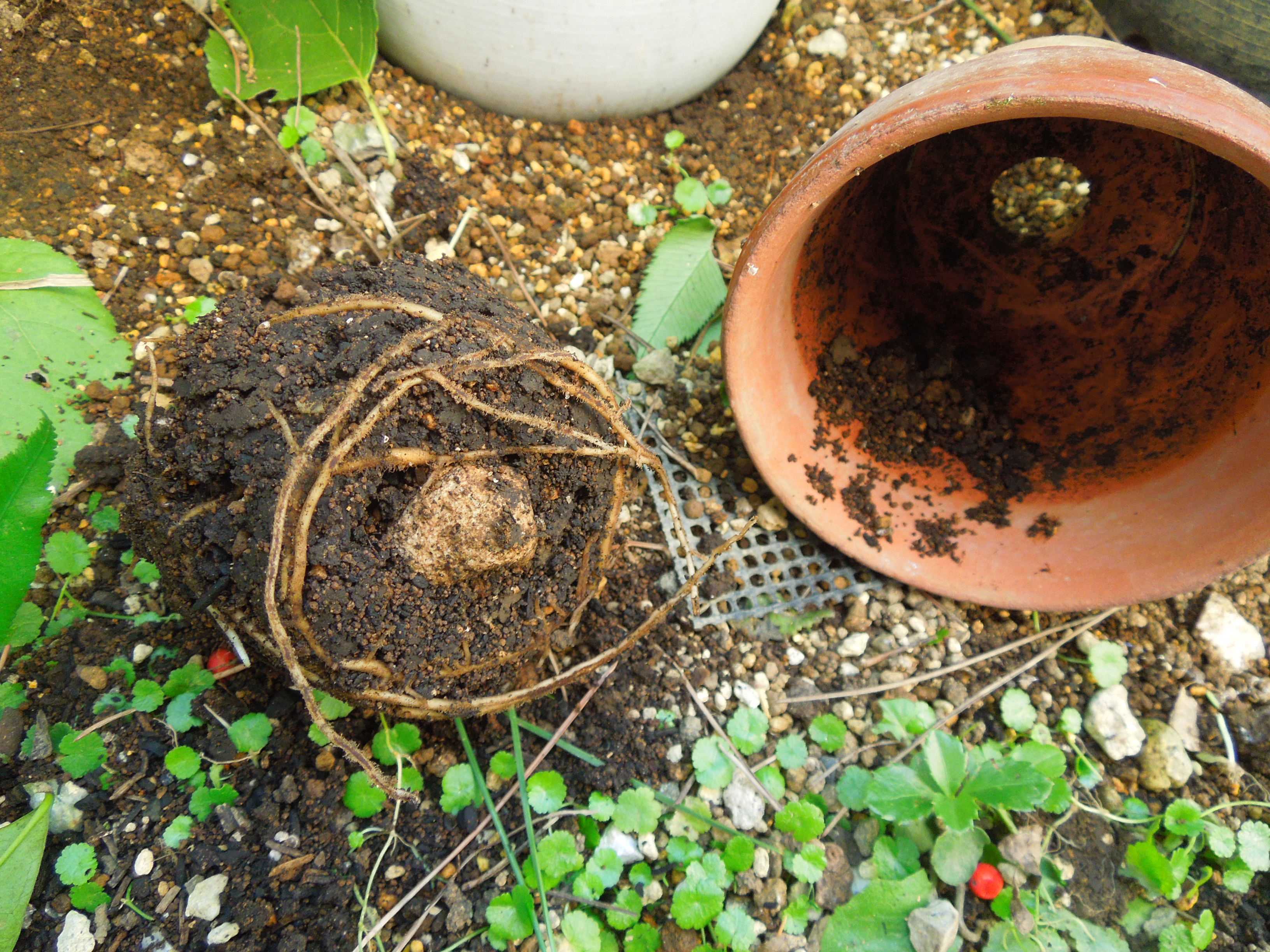 地面に直接置いてあったので鉢底から・・・