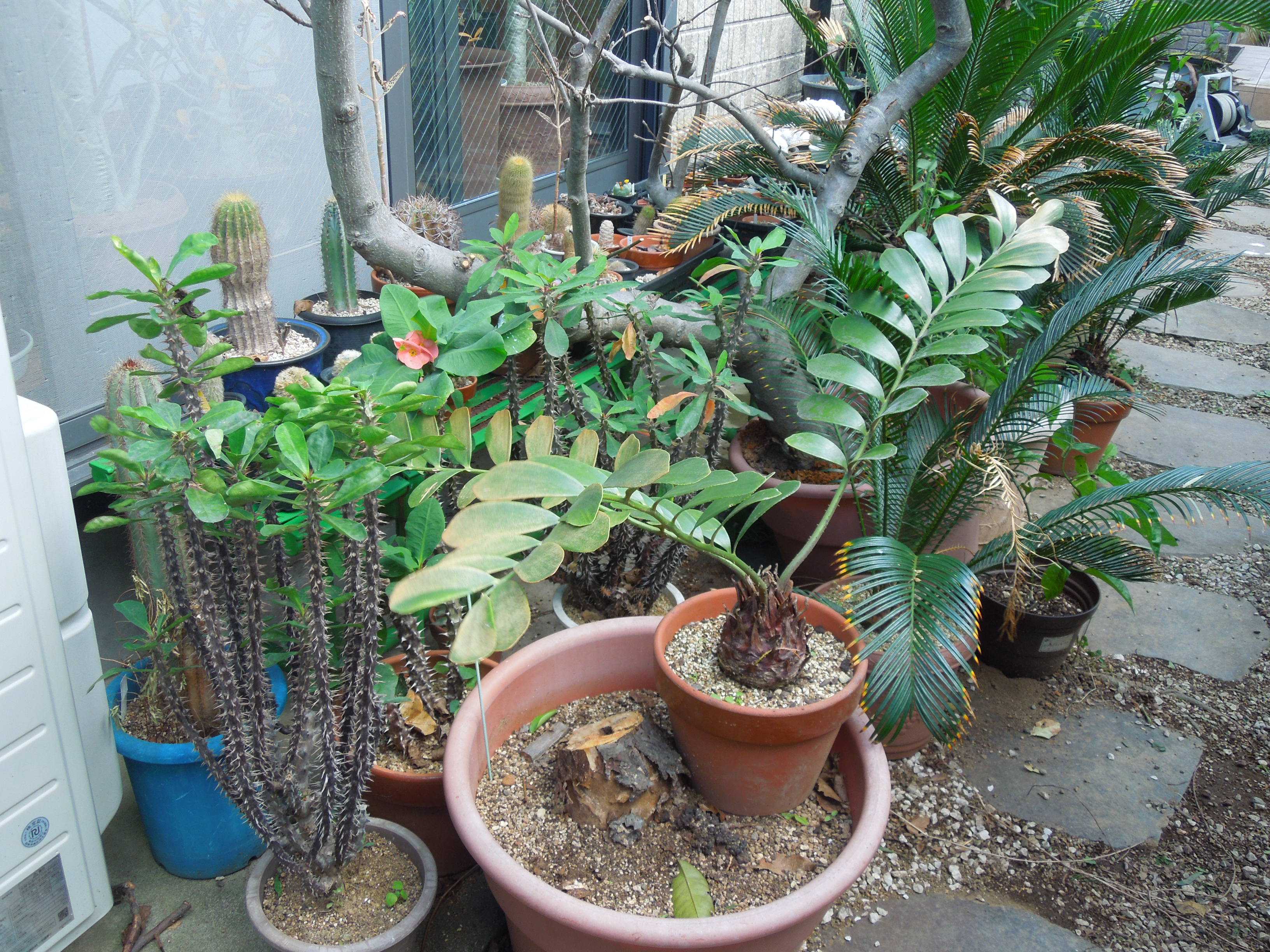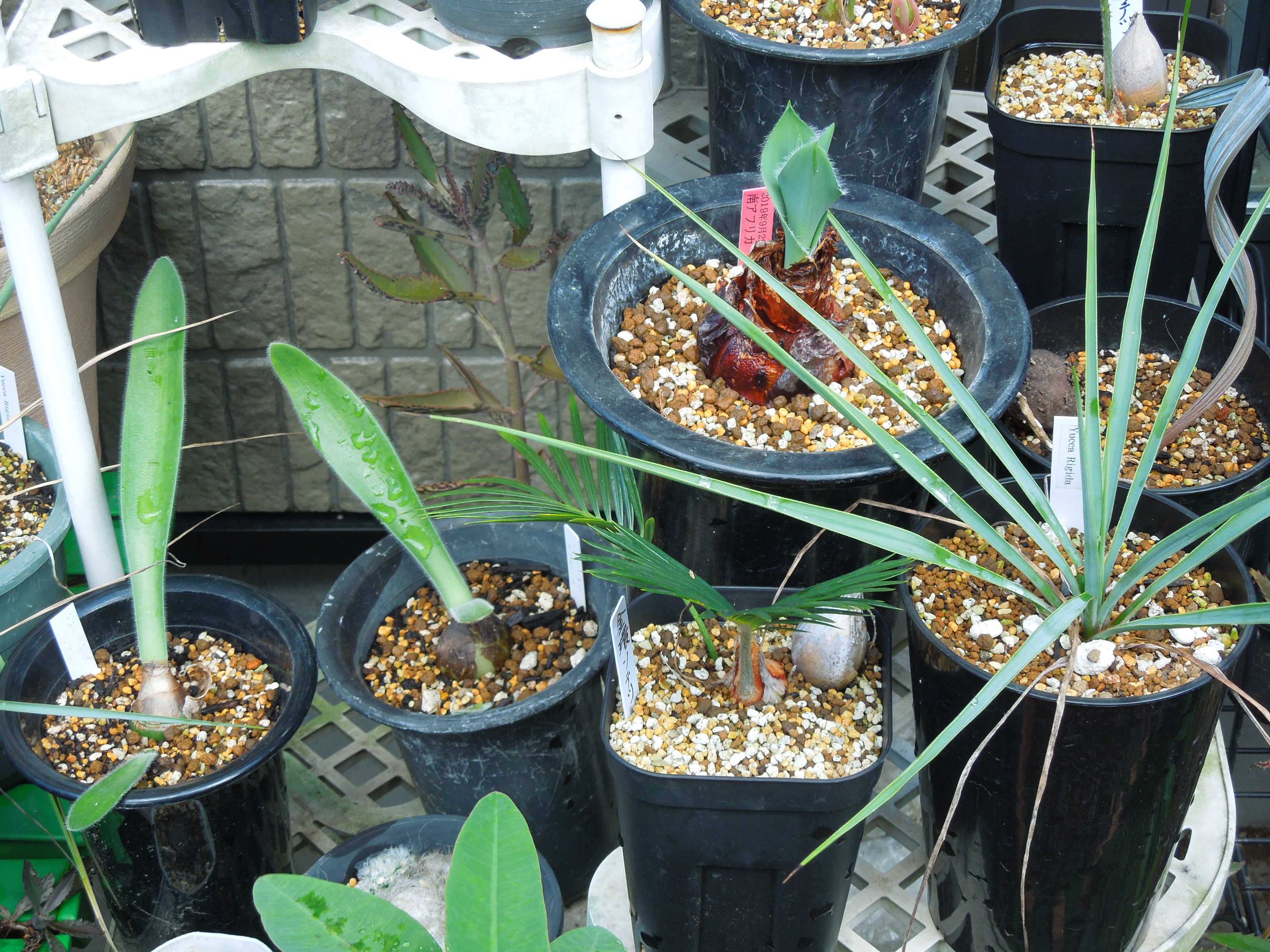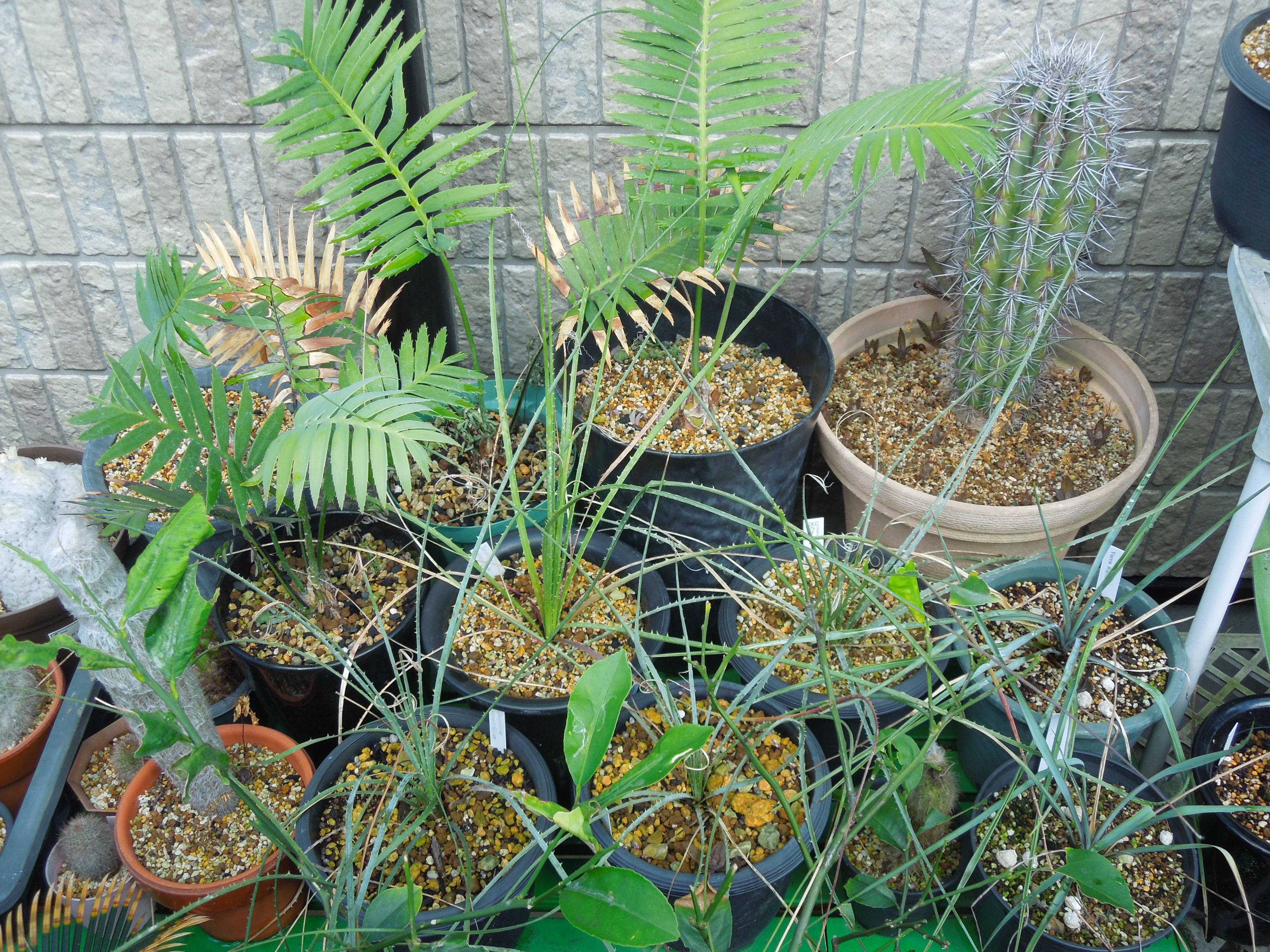 昨冬、葉が痛んだがなんとか復活したディオーン・スピヌロスムとダシリリオンの小苗。