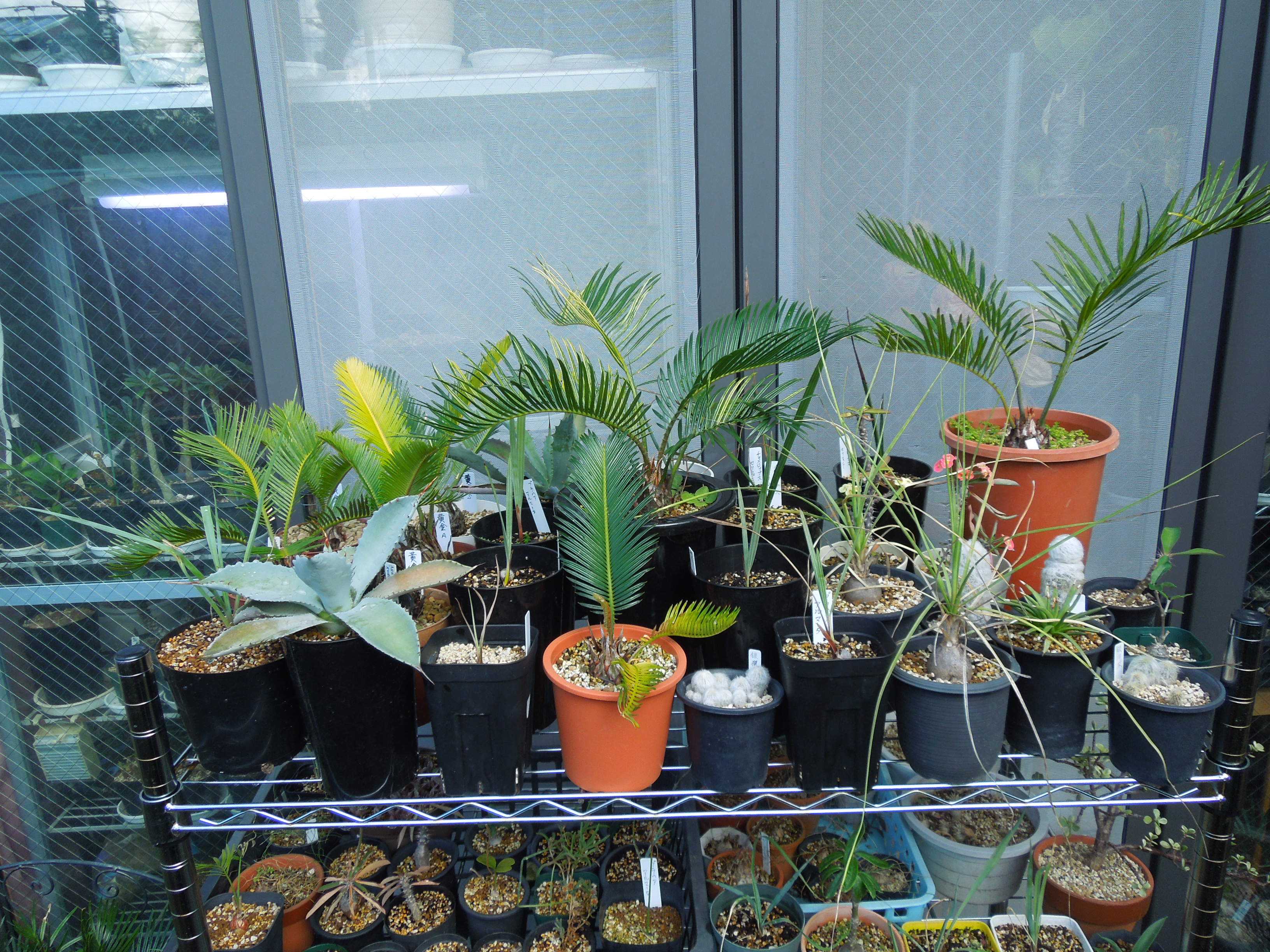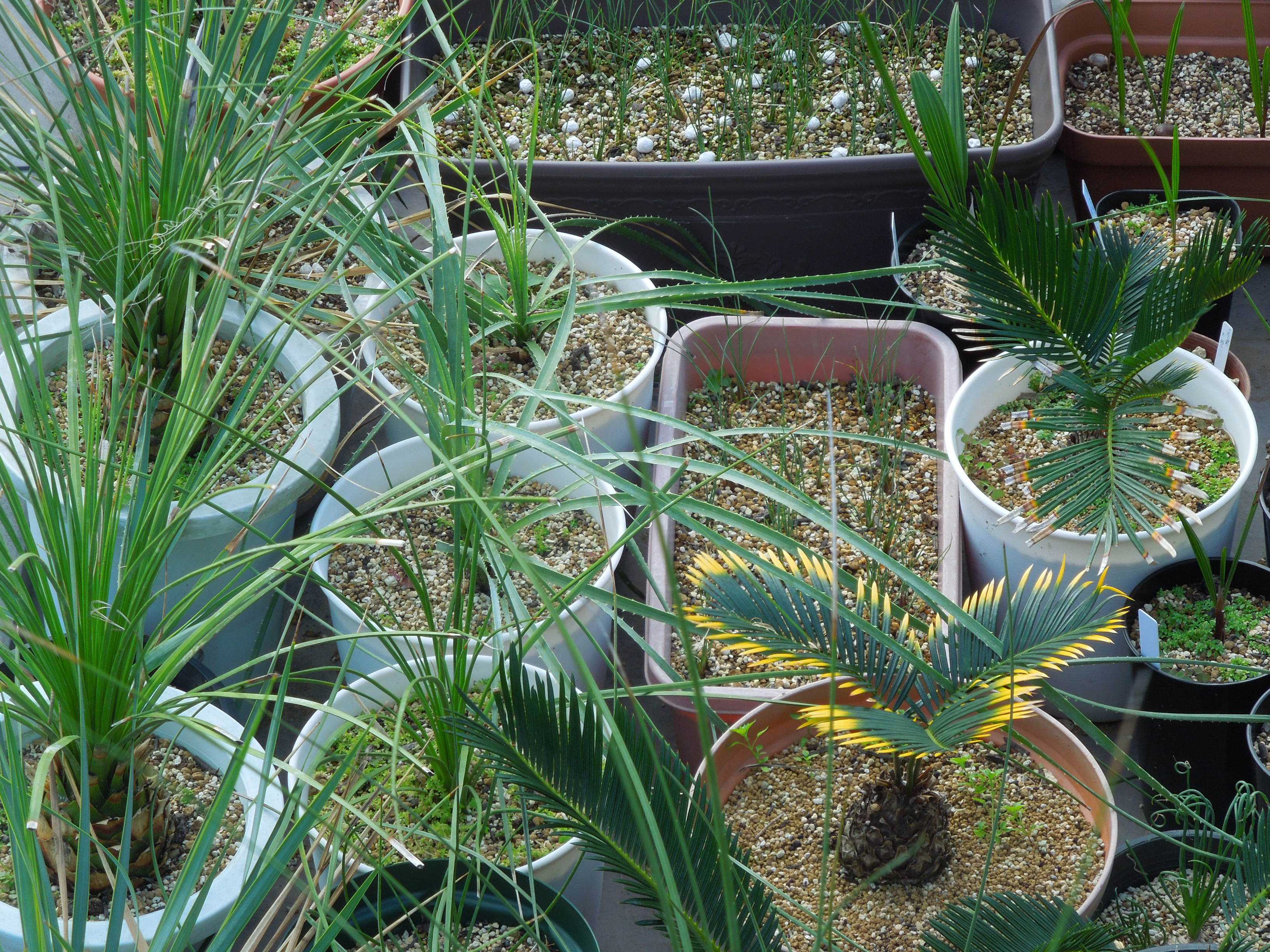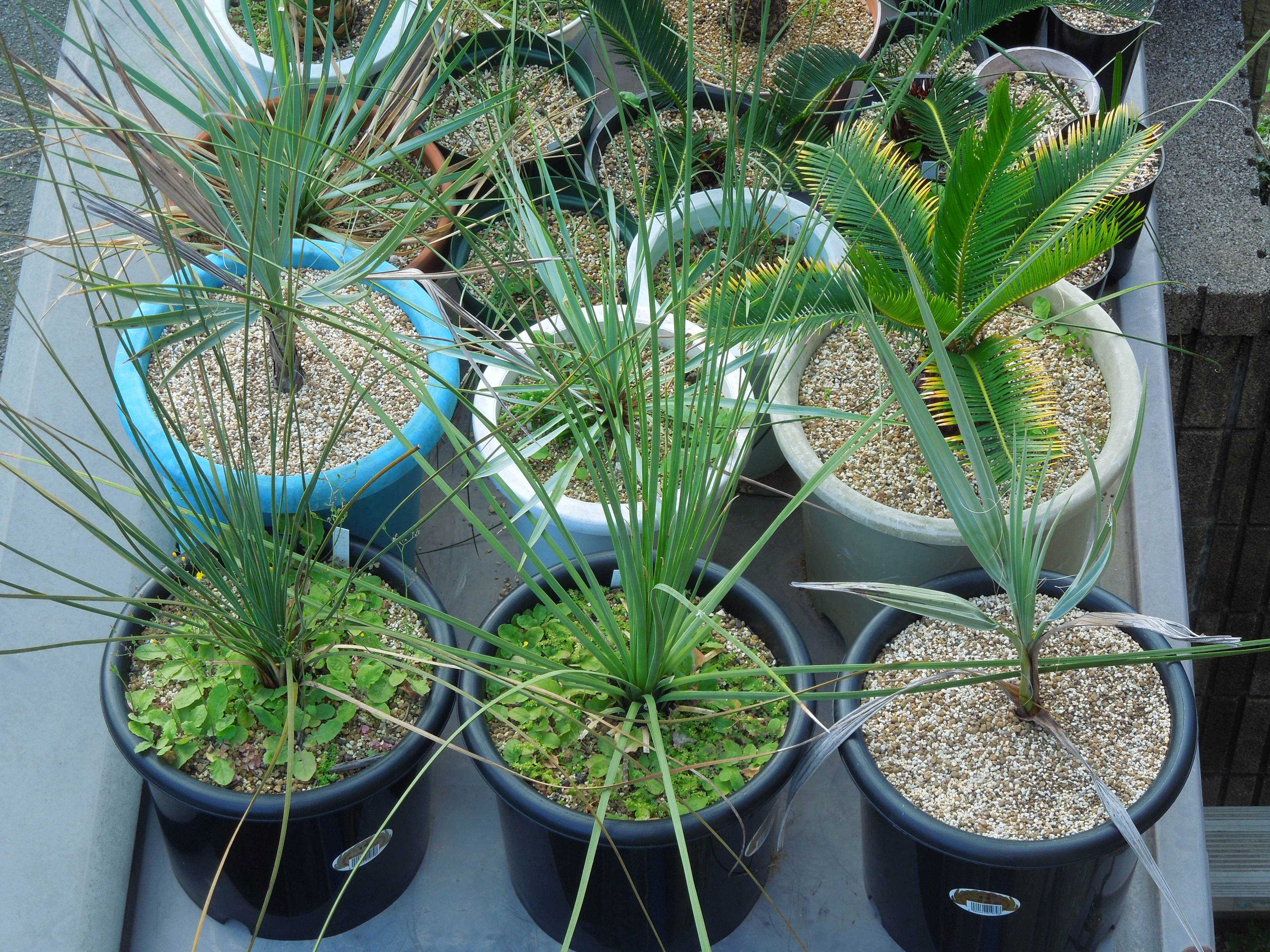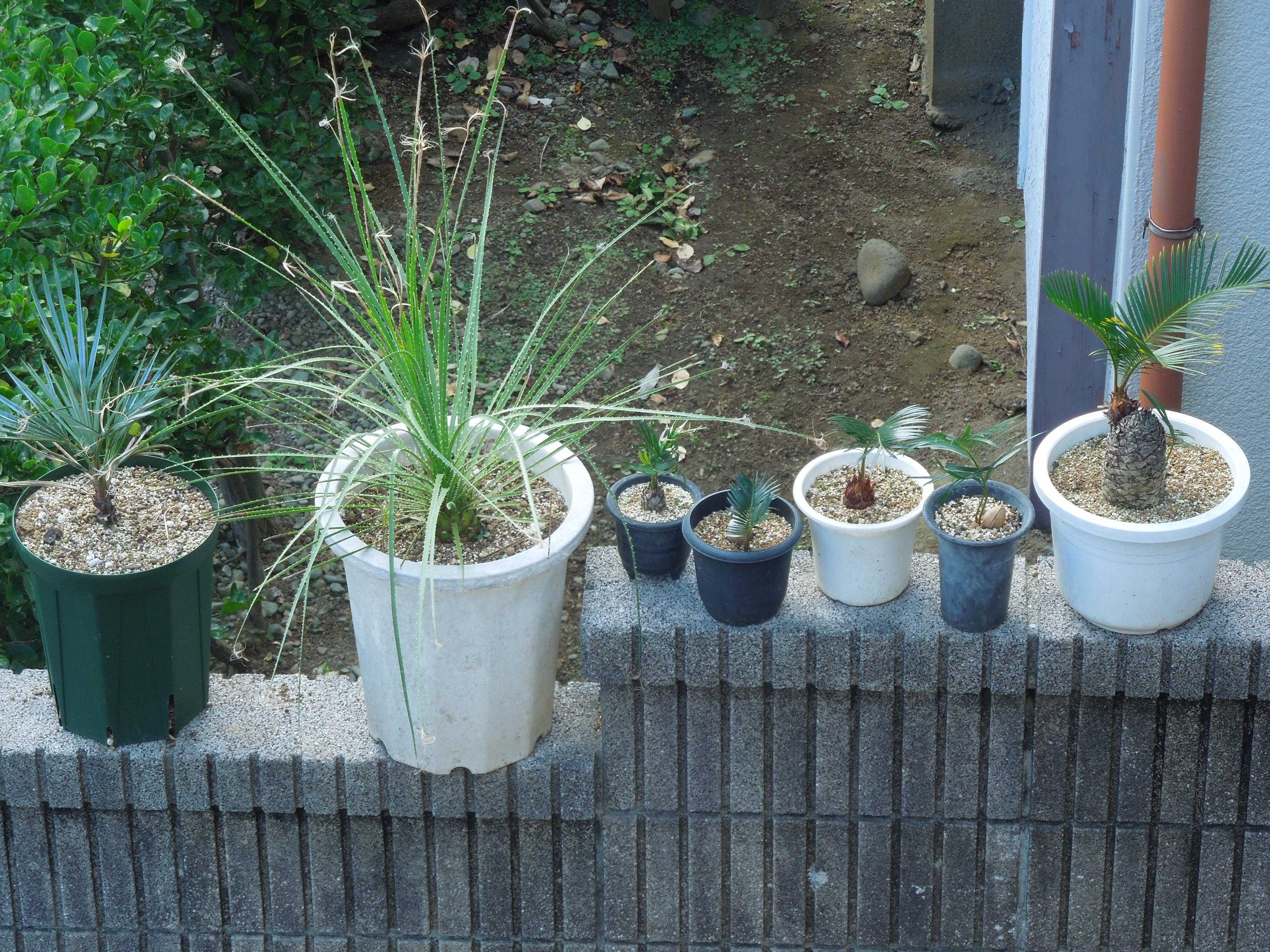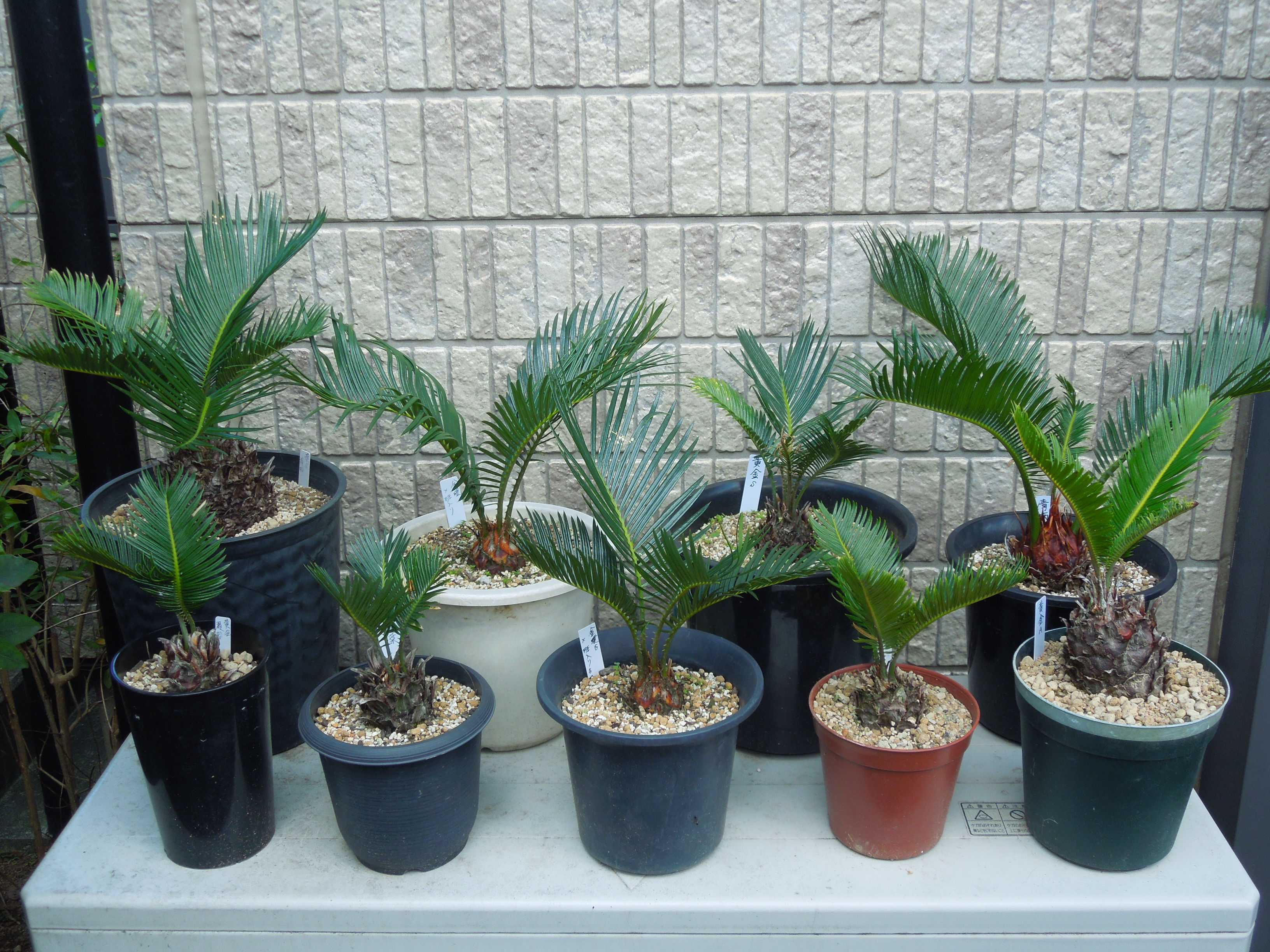 物置の上と同じやつらと何年か屋外越冬しているソテツ。