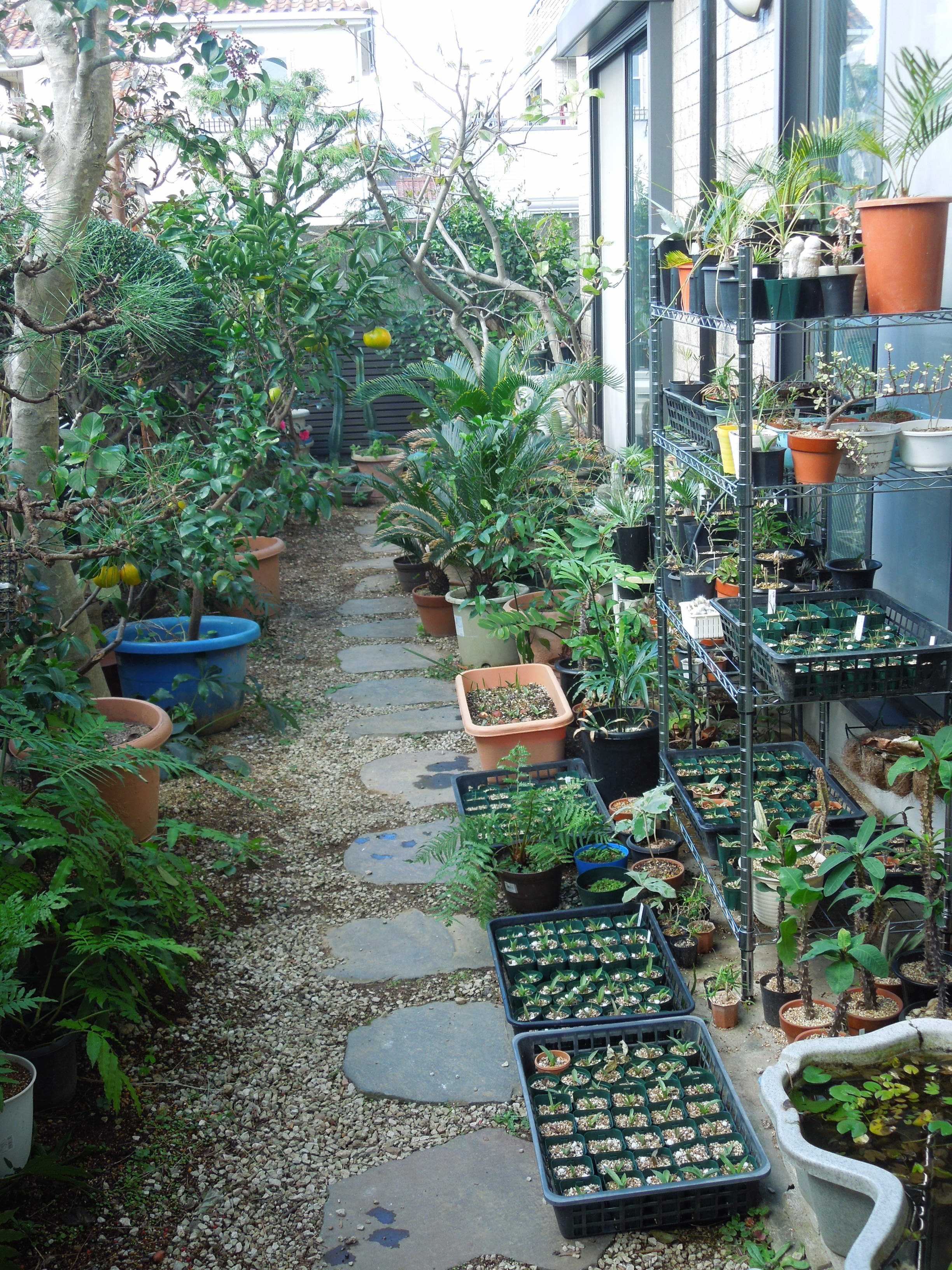 北風が当たるのでソテツの小苗は南側軒下に移動。