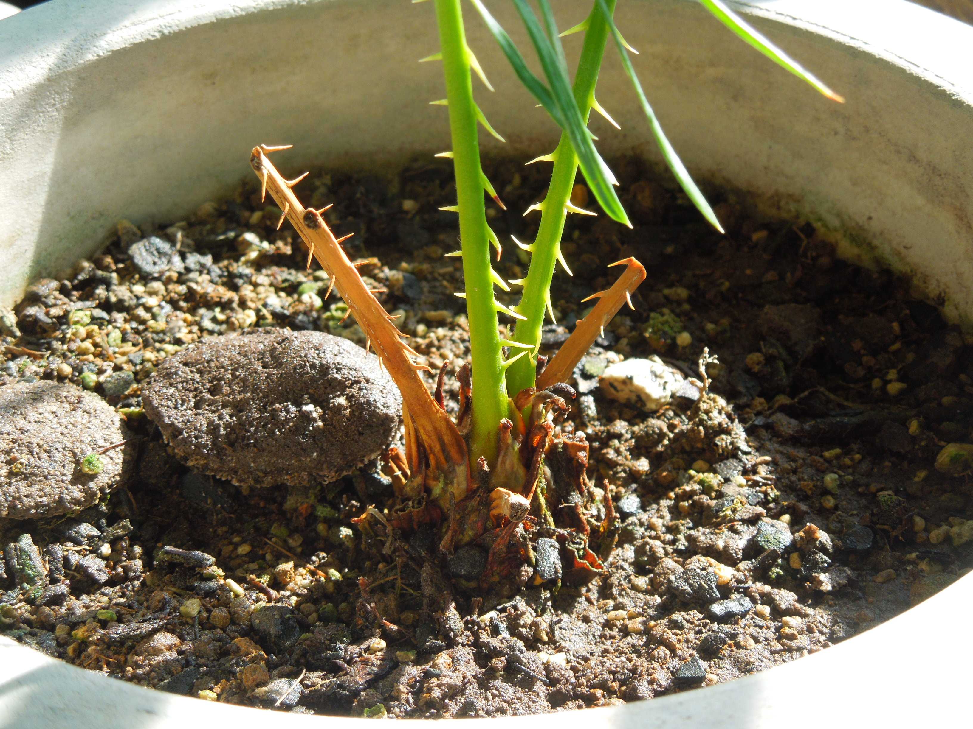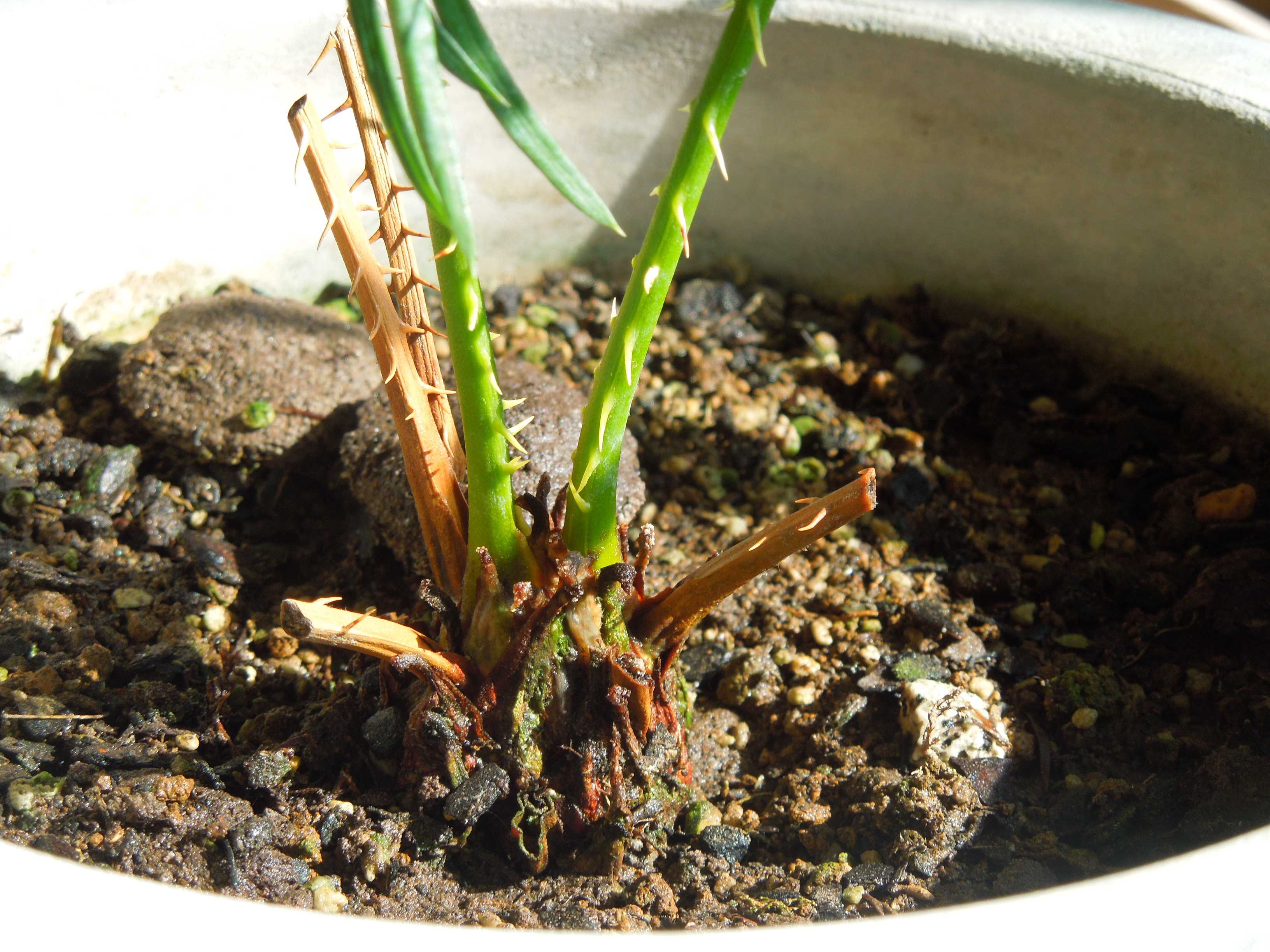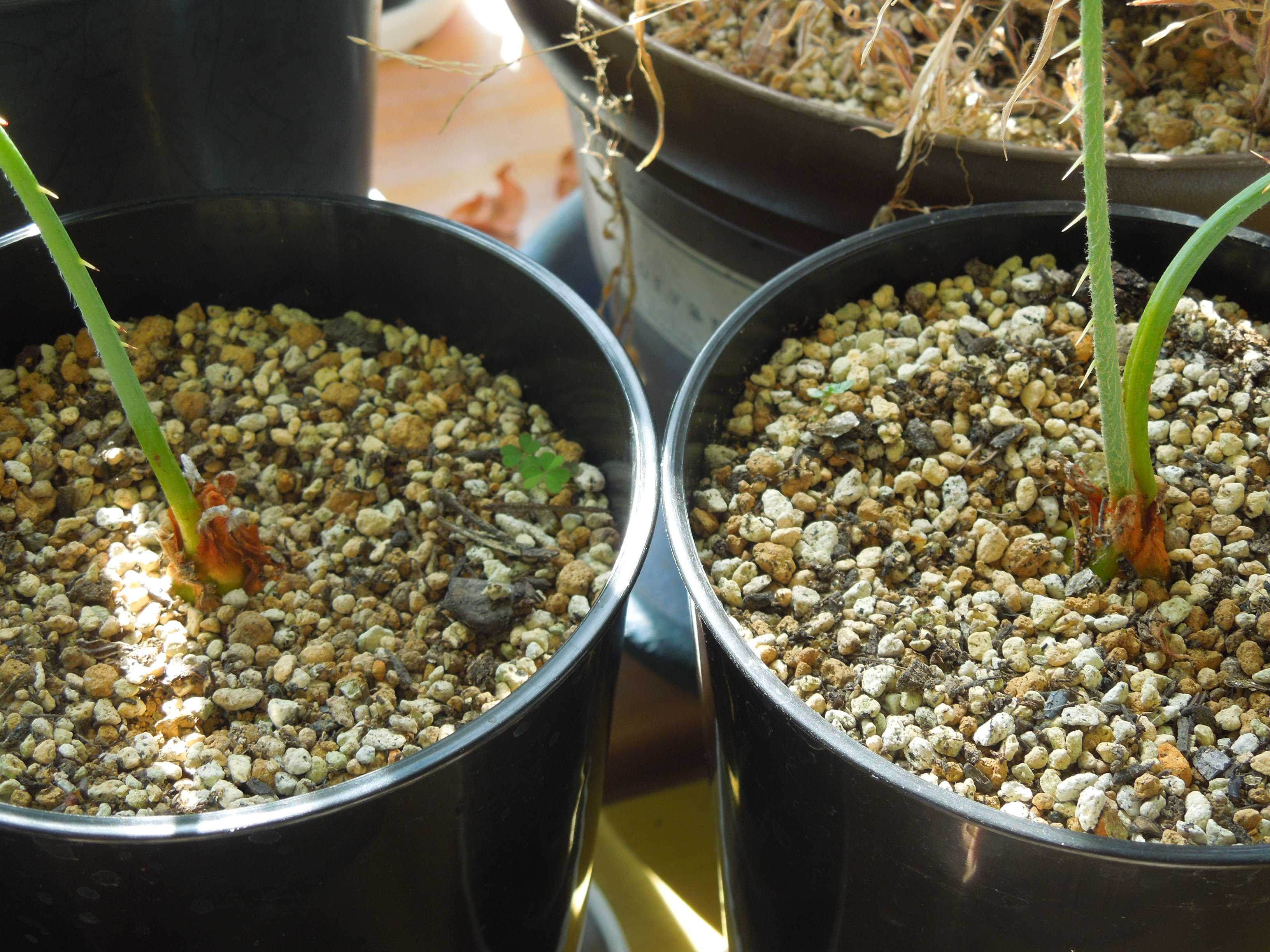 どれも塊茎部を少しだけ見えるように植え替えたが、こいつは植え替え後に根が育つ課程で用土に引き込潜って潜ってしまったみたいだ。