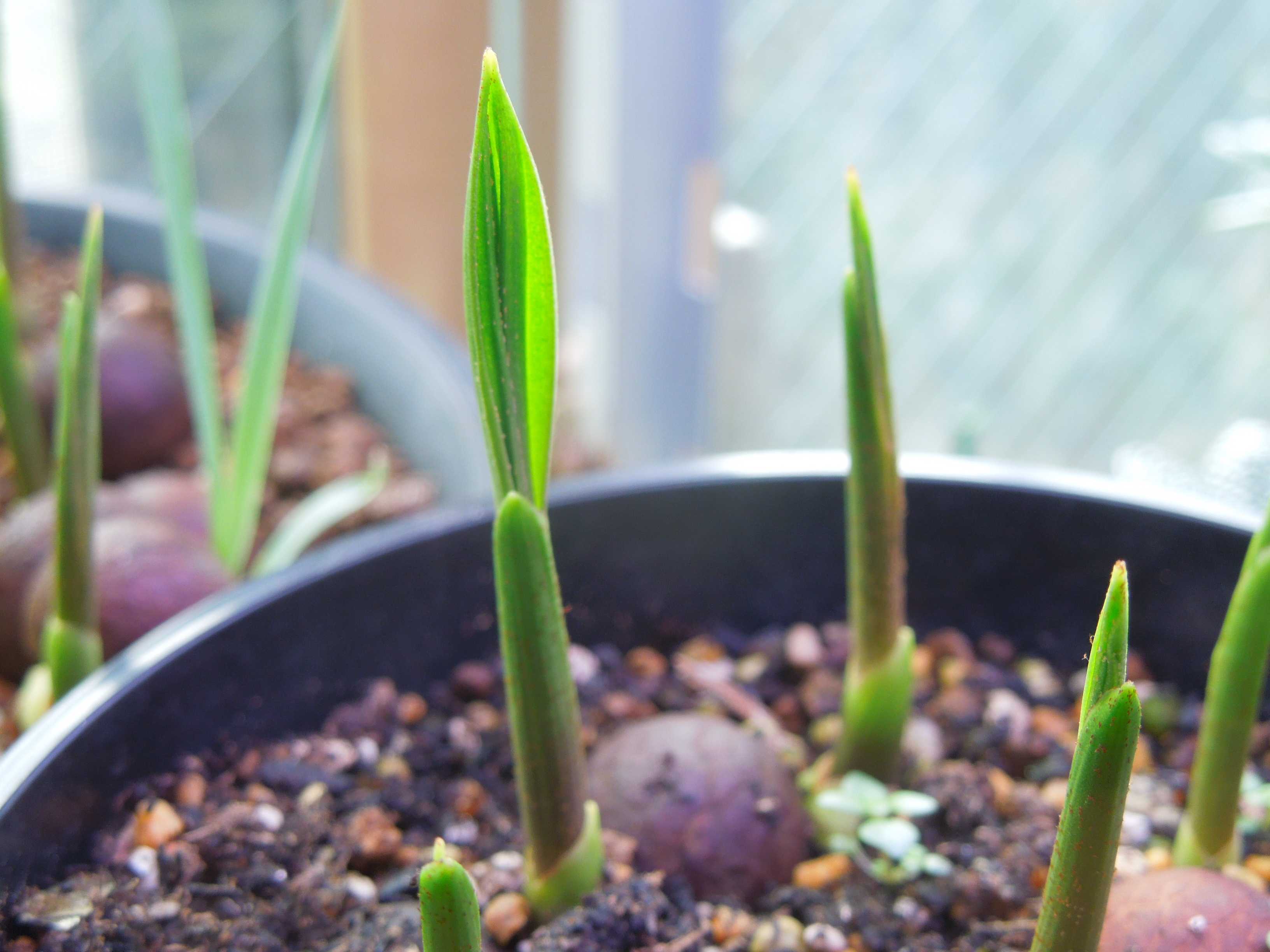 つのみたいな芽だけだったのが、だいぶ葉らしいものが出てきた。