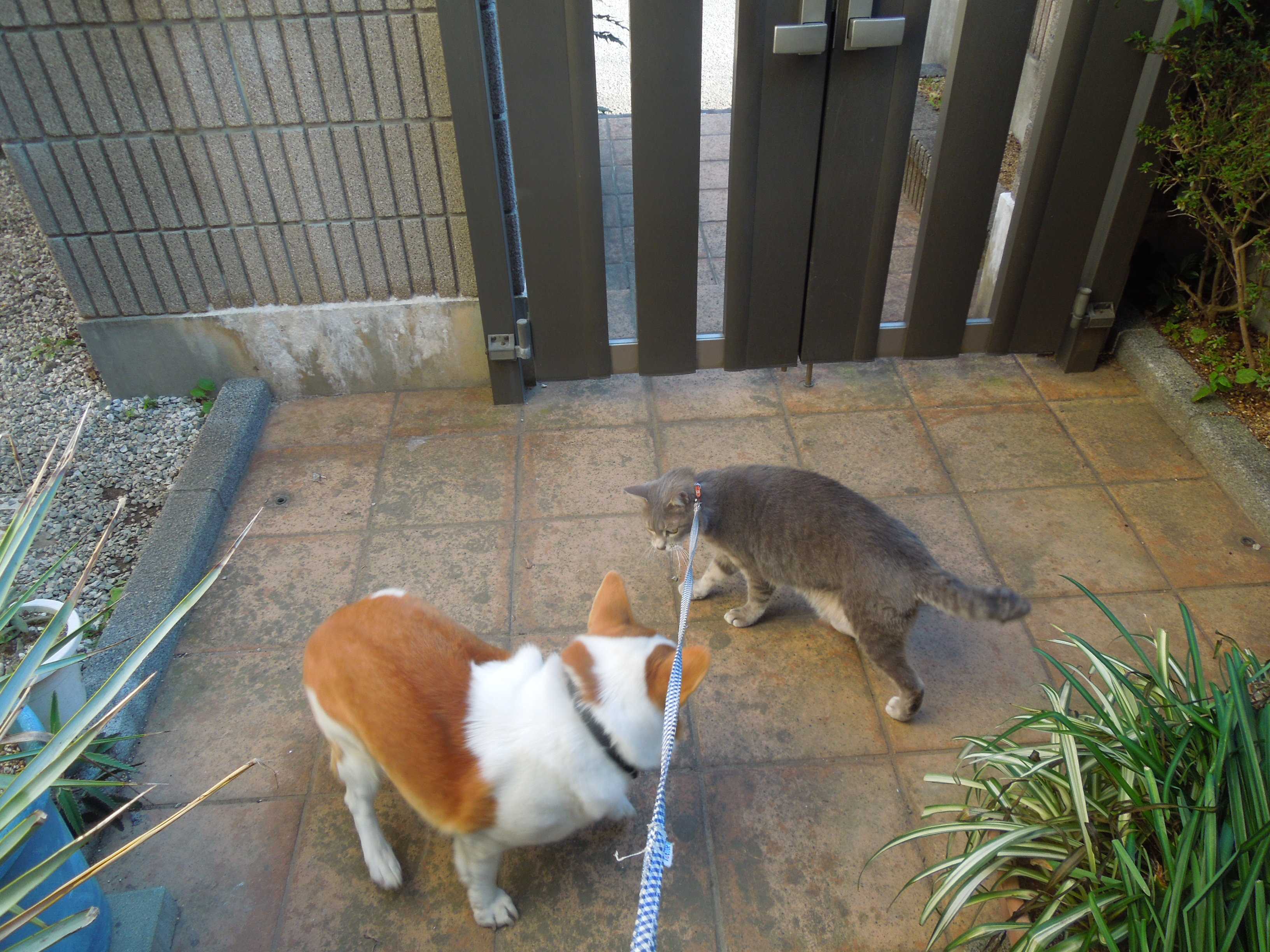 小平太君はたまには外に出たいようだし、小太郎君はリードを付けての散歩では運動量が足りない感じなので門に鍵を掛けて敷地内を走らせている。