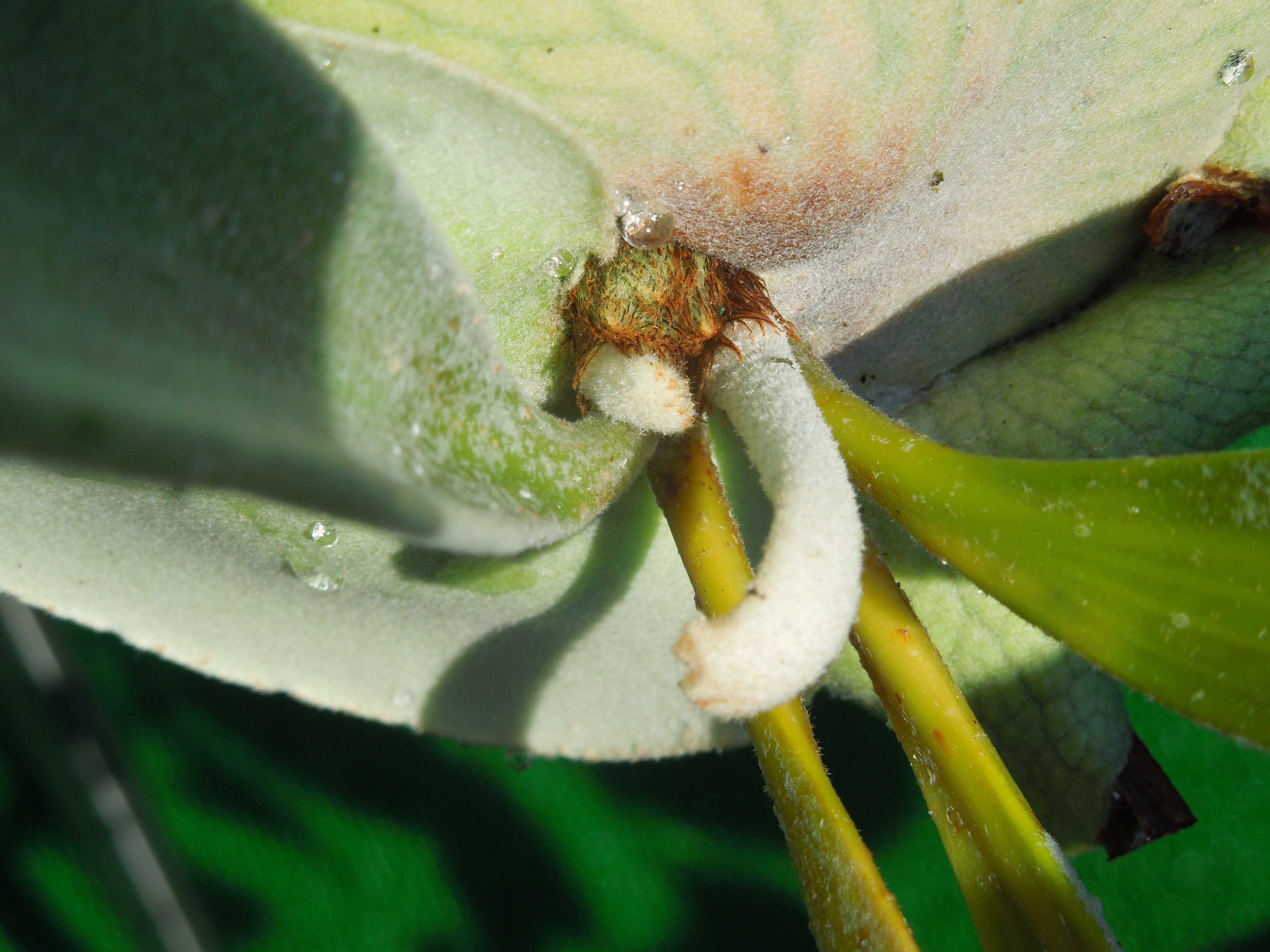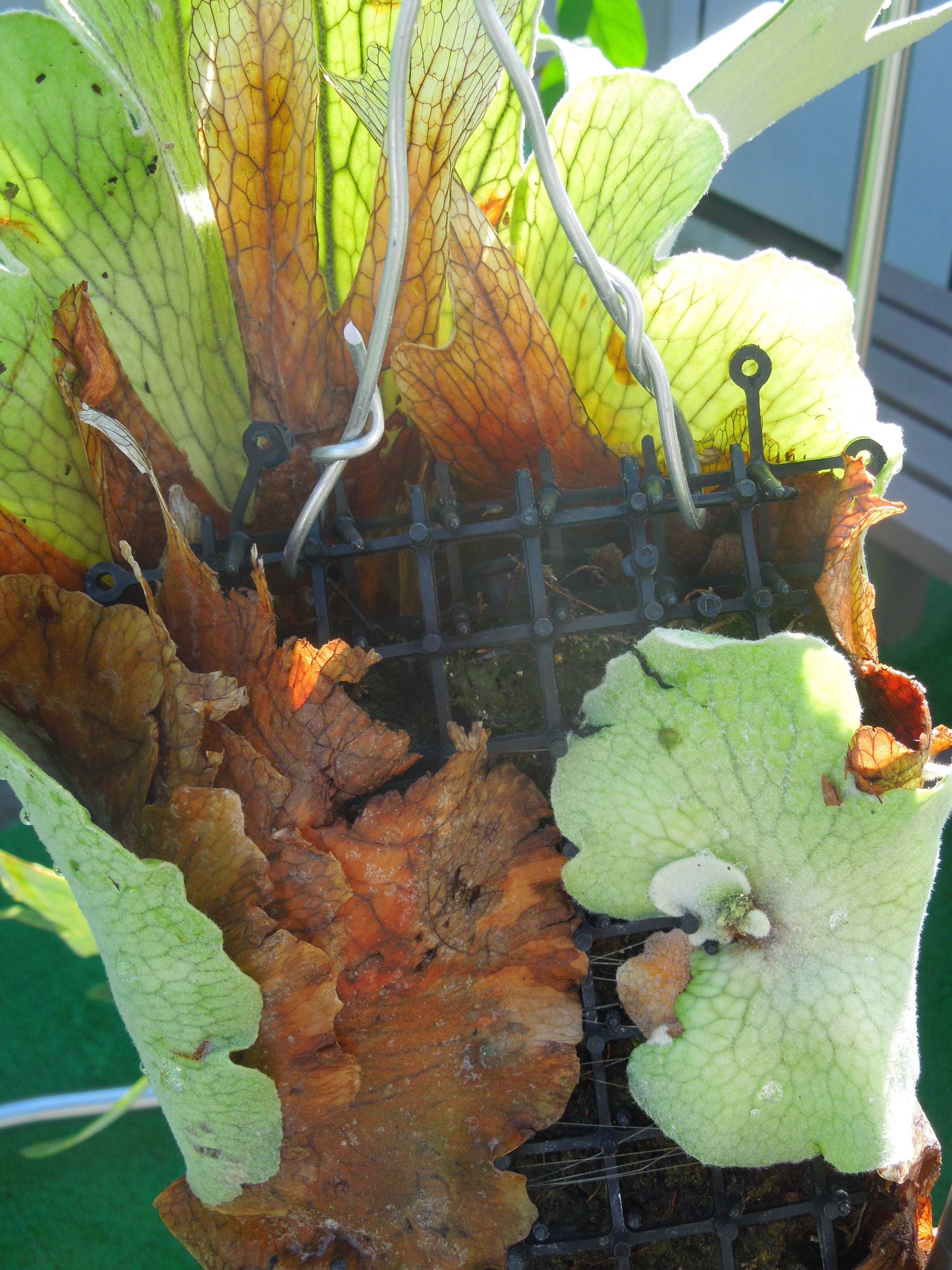 子株が飲み込まれそうになっていたので、親株の貯水葉を千切った。
