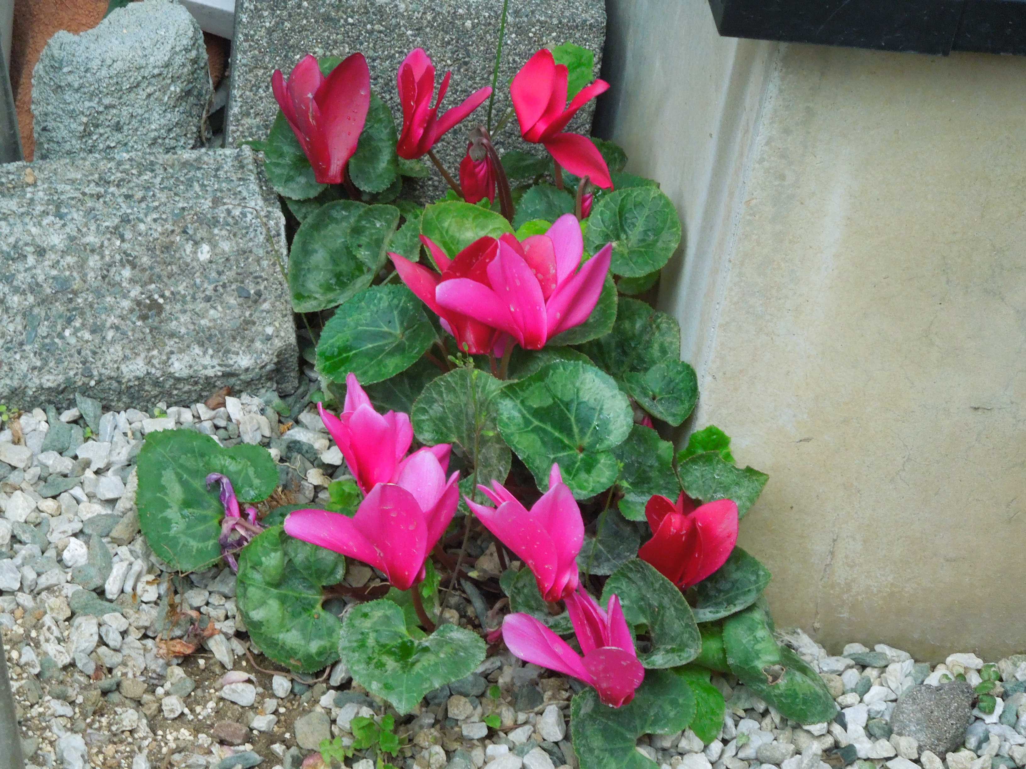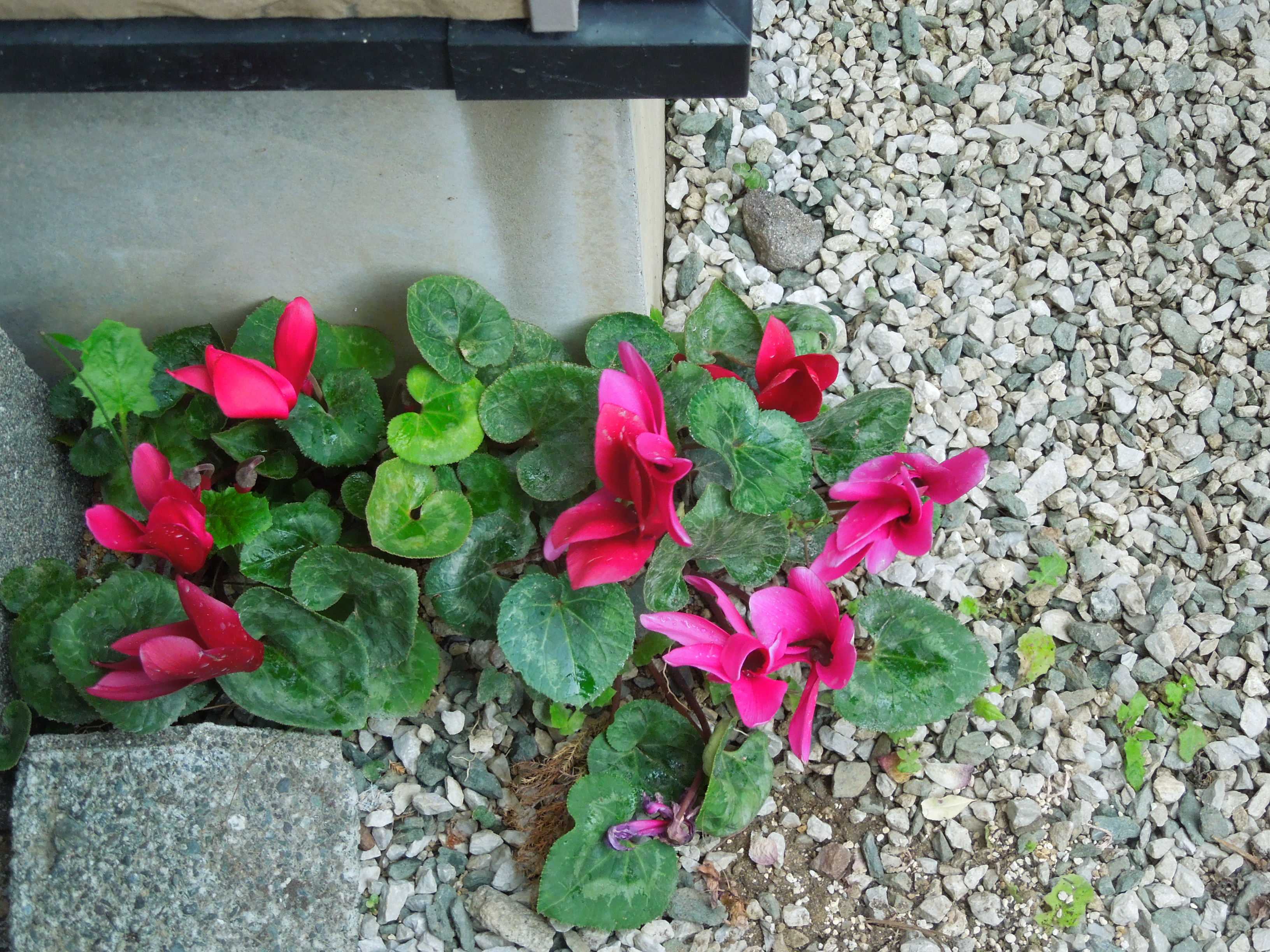 数年前に花が終わった後に鉢から抜いて庭の隅に放置されたシクラメン。