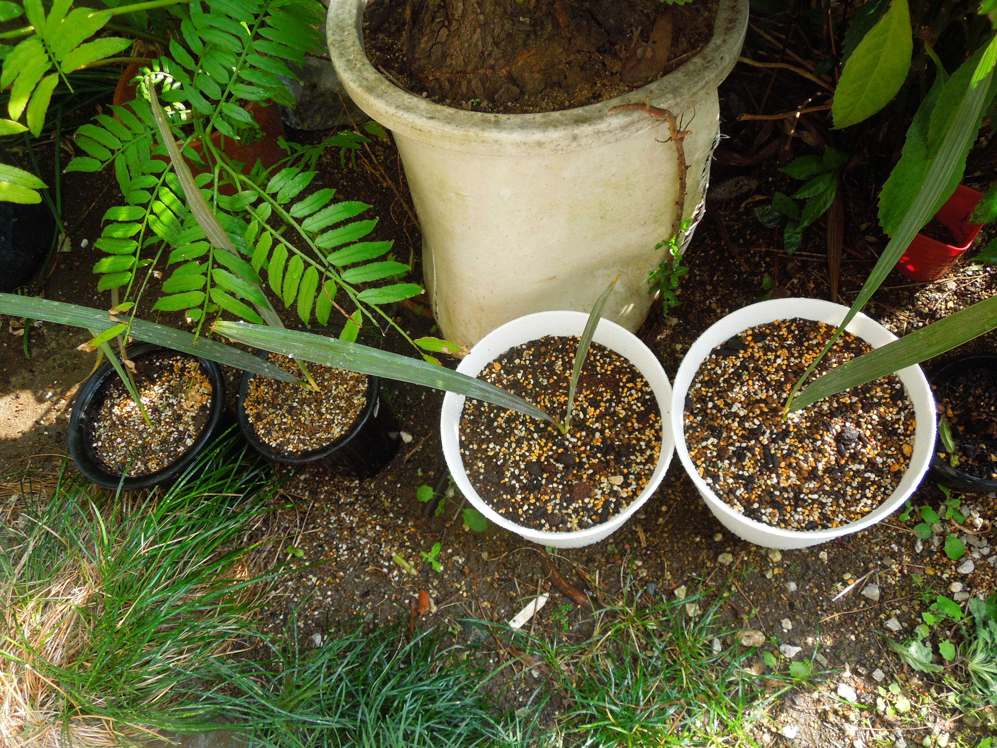 先日植え替えたやつらと一緒に木漏れ日が当たるくらいの場所に置いた。